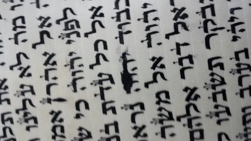 הסופר מחק אות פסולה. תוך כדי המחיקה נעשה נקב קטן מאוד שראה רק כנגד האור. הנקב נמצא על קו השרטוט. הסופר לא הבחין בנקב וכתב את האות מחדש. התוצאה: אות שאינה מוקפת גויל. הקלף במקום דק מאוד ולא ניתן לגרד קצת מהדיו כדי להגיע להקפת גויל.