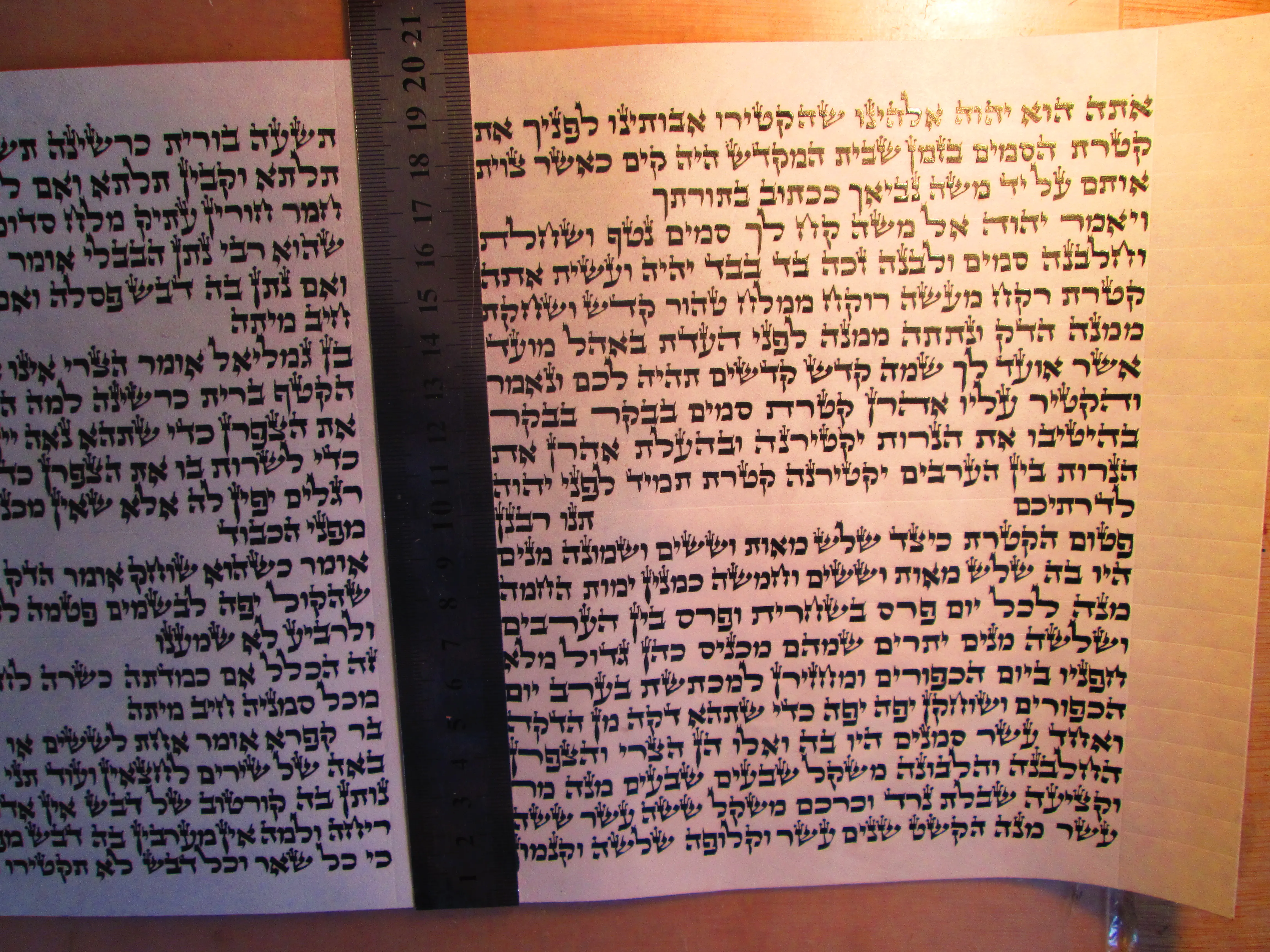 את המזוזות חותכים גם מיריעות גדולות, כמו של ספר תורה (יותר דקות)