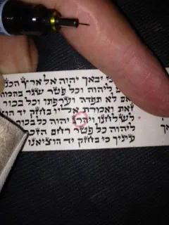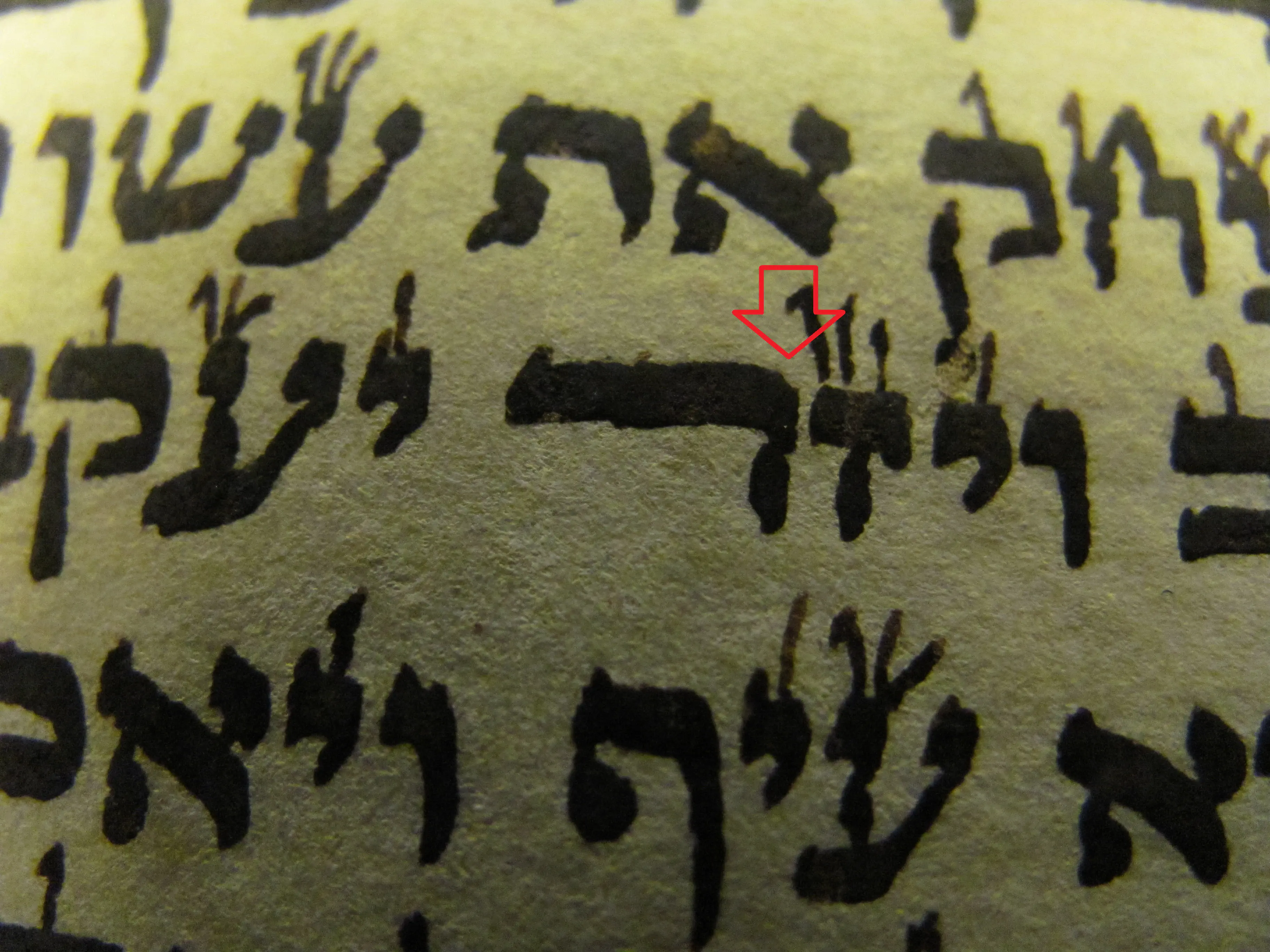כפי שאני מבין אתה מתכוון לה' אז כך למעשה ישנה מחלוקת גדולה מאוד האם בה' שנדבקה בגגה האם אפשר לגרור או לא כלומר האם זה חק תוכות או לא ומהמקור הוא מהבנת הסוגיה במנחות לגבי ספרא דווקני שתלו לכרעה דה' יש לציין כי הרבה ראשונים הבינו כי הה' הייתה דבוקה ורק הספרי דווקני הפרידו אותה וכך הבין גם התשבץ וכן מדייקים מהרמב"ם.ולכן למעשה אם זה נעשה לאחר כתיבה רבו הפוסקים שטוענים ספק ספקא וראוי לסמוך עלהם בשם השם ולכן שואל תינוק שזה ה ואז מפריד (והספק ספקא הוא שמא זה כשר גם כך ואם לא שמא הלכה כסמ"ג והרשב"א שלאחר כתיבה אין בעיה של חק תוכות) (אני יודע כי חלק יטענו כי זה דווקא שהדיבוק הוא בדקות ולא כמו פה אלא פה מכוון שזה כתב ב"י ויש צורת יוד הפוכה למטה אז היא לא נראת ח') ואם זה נעשה בשעת הכתיבה אז ימחוק מלמטה למעלה שלא תהיה ה' בכל אופן(בשאלת יעבץ לומד שגם מלמעלה למטה מותר מכוון שלא חל קדושה בחק תוכות אבל הרבה חלקו עליו וכן במהרם מלובלין משמע שגם בדיבוק דק יכול להפריד ולמחוק ולאו דווקא לקלוף)