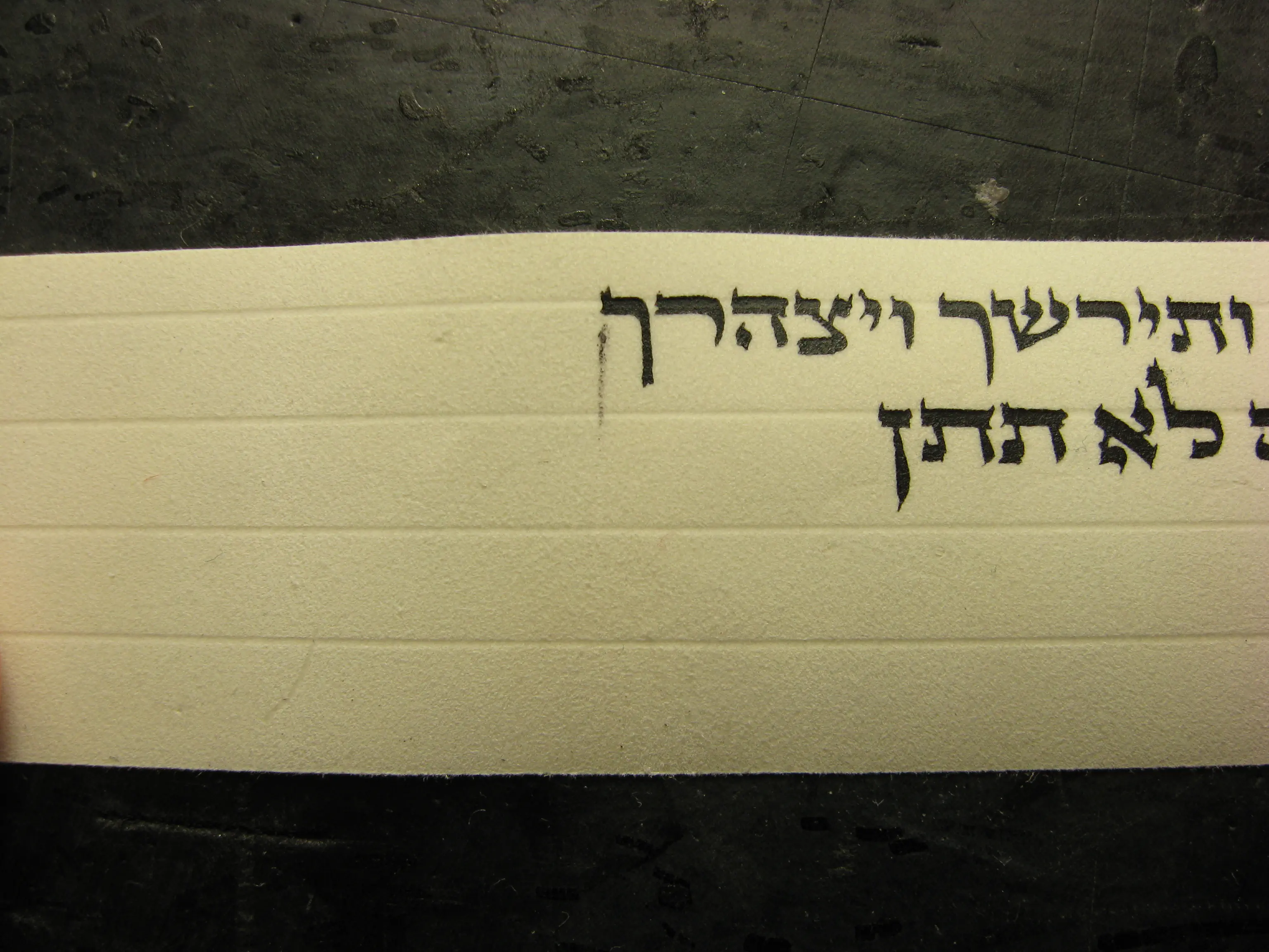 כותב בנוצה או בקנה (בשלב ההתמחות - עדיין ללא תוספת תשלום) משתדל ללא דיבוקים.