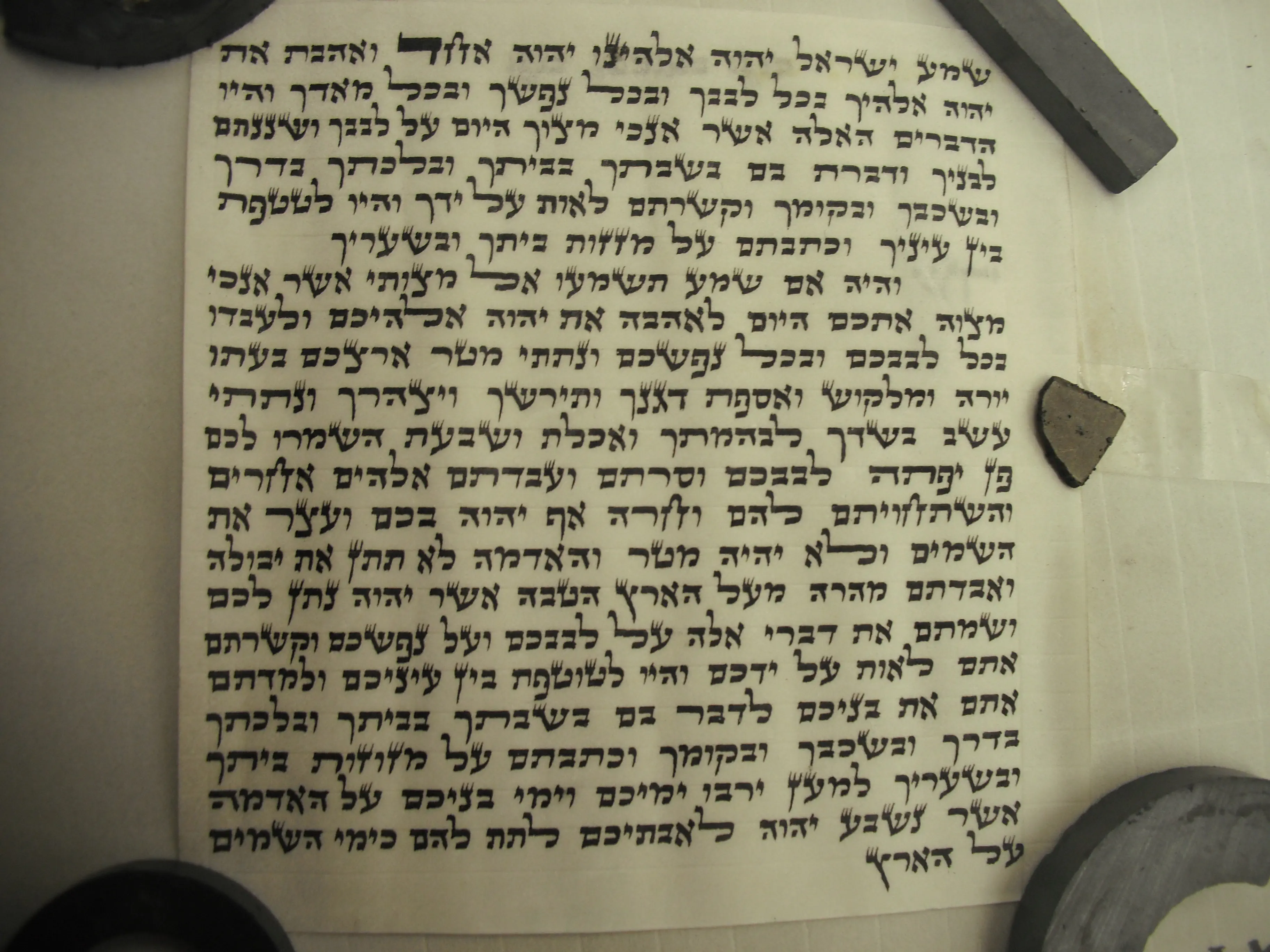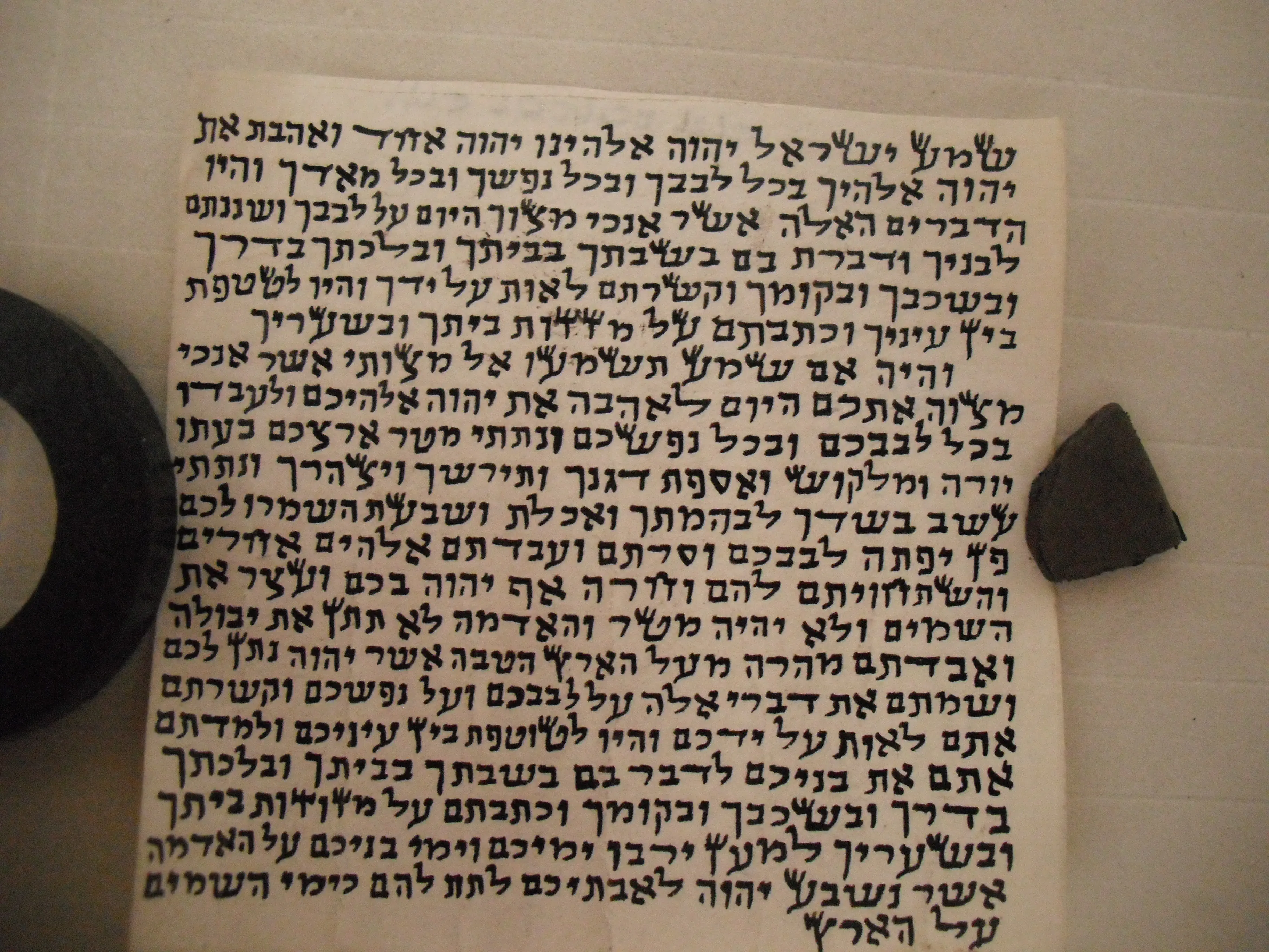 הסופר צייר פסיעה מלבר באות ה' של השם (ס"ת עתיק).