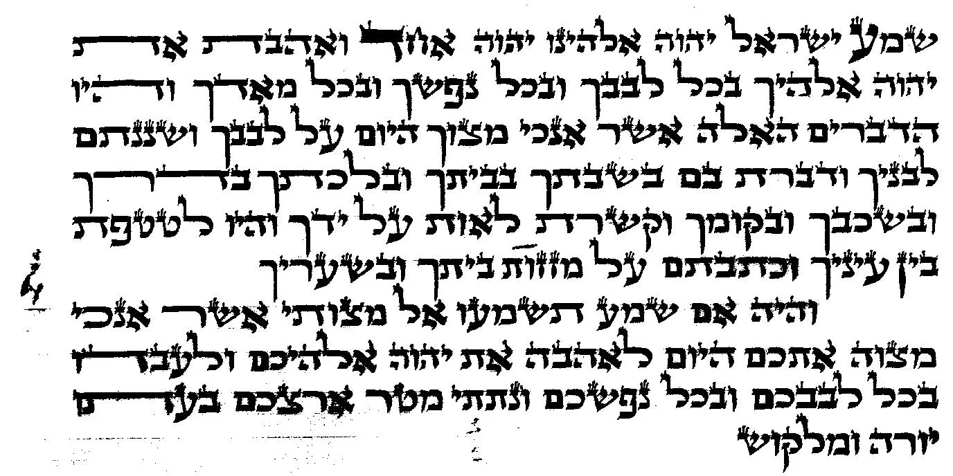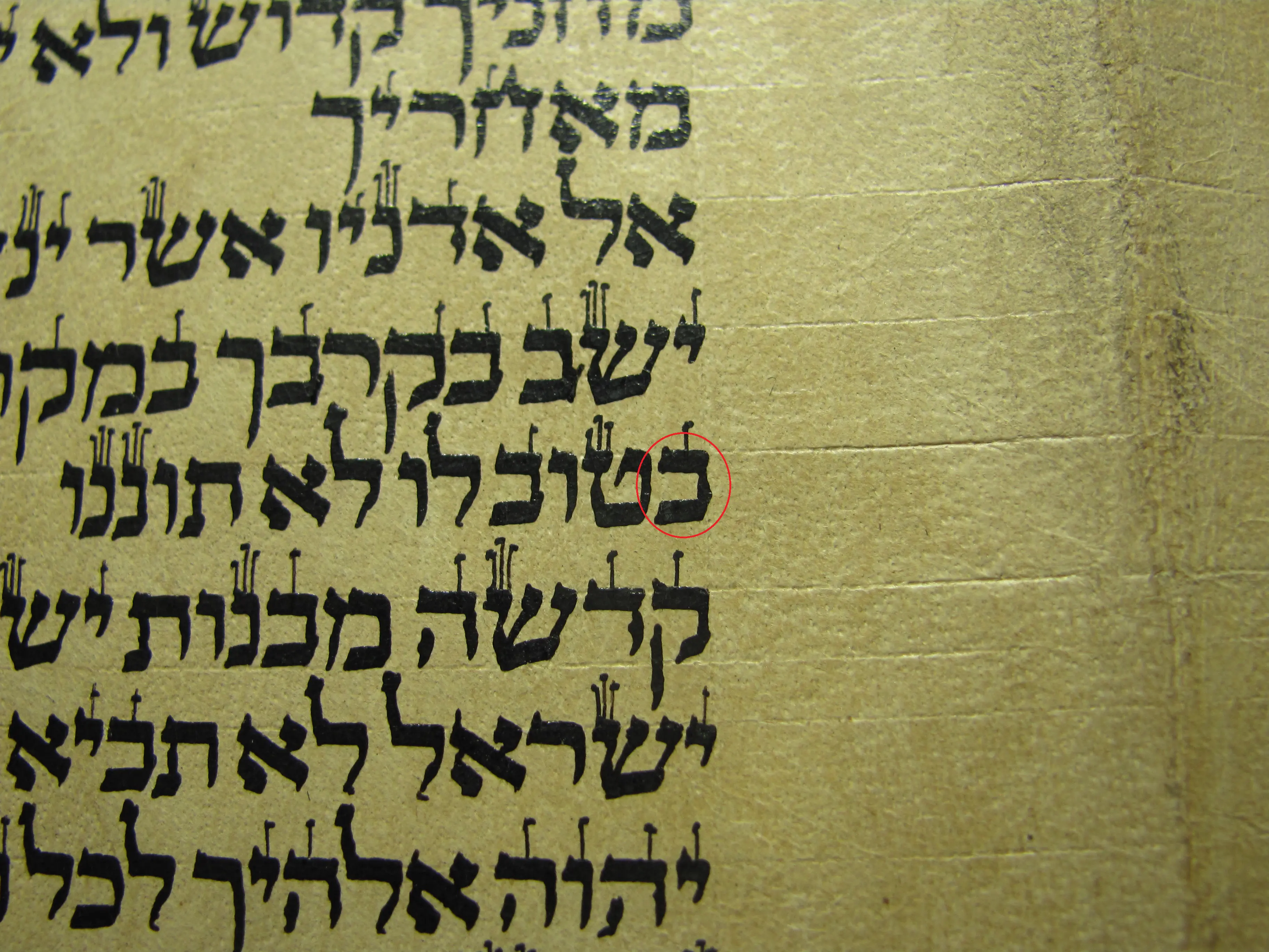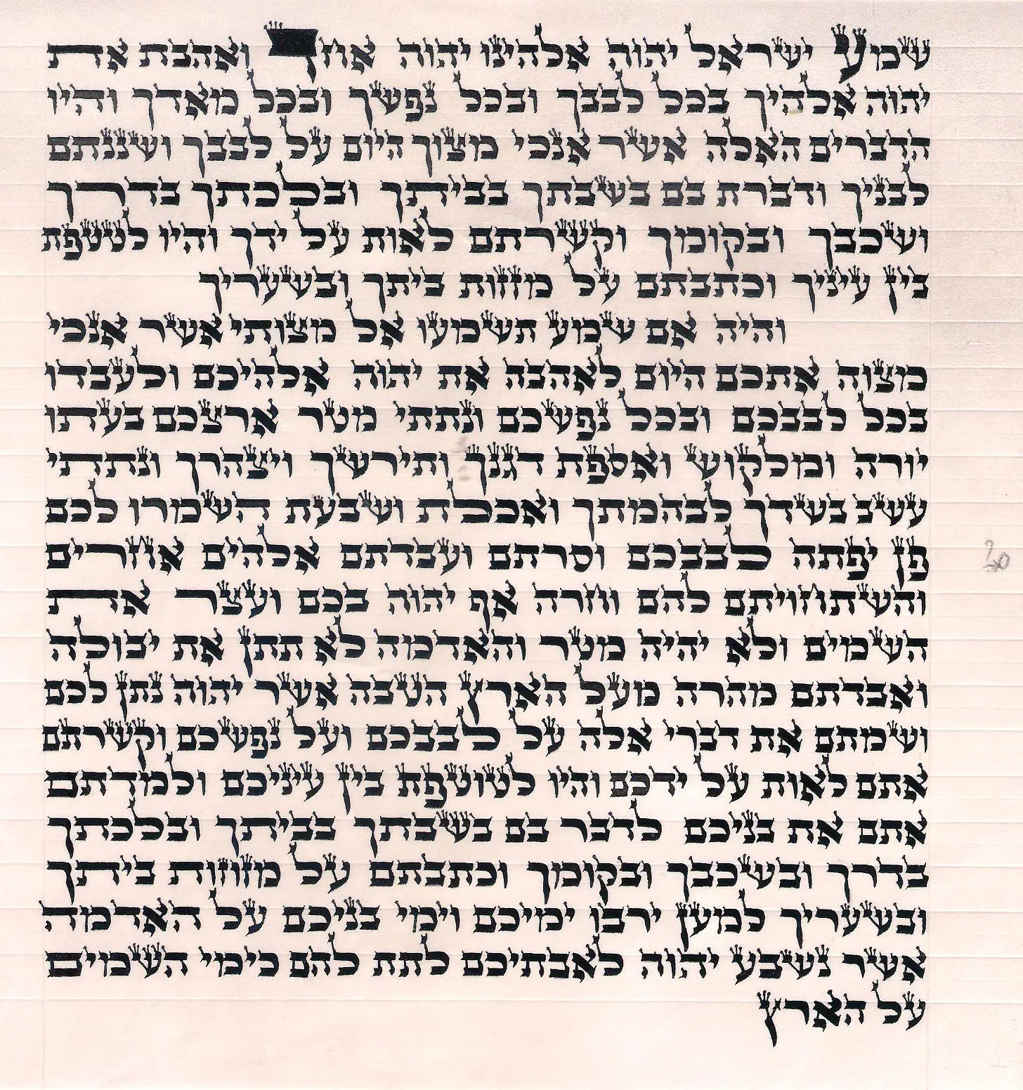 לפניכם מזוזה גודל 20, באתי לחבר לשאול על האות "צ" שיצא לה קו נוסף, ועל האות "י" שיצא קצת עבה.