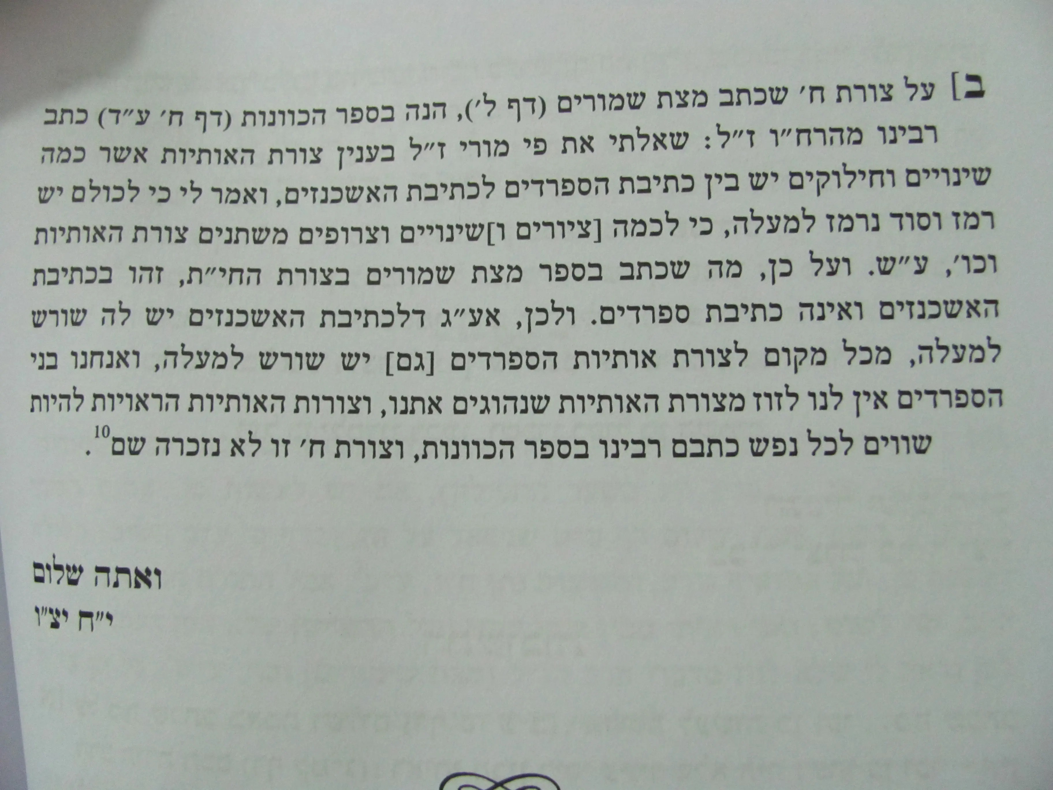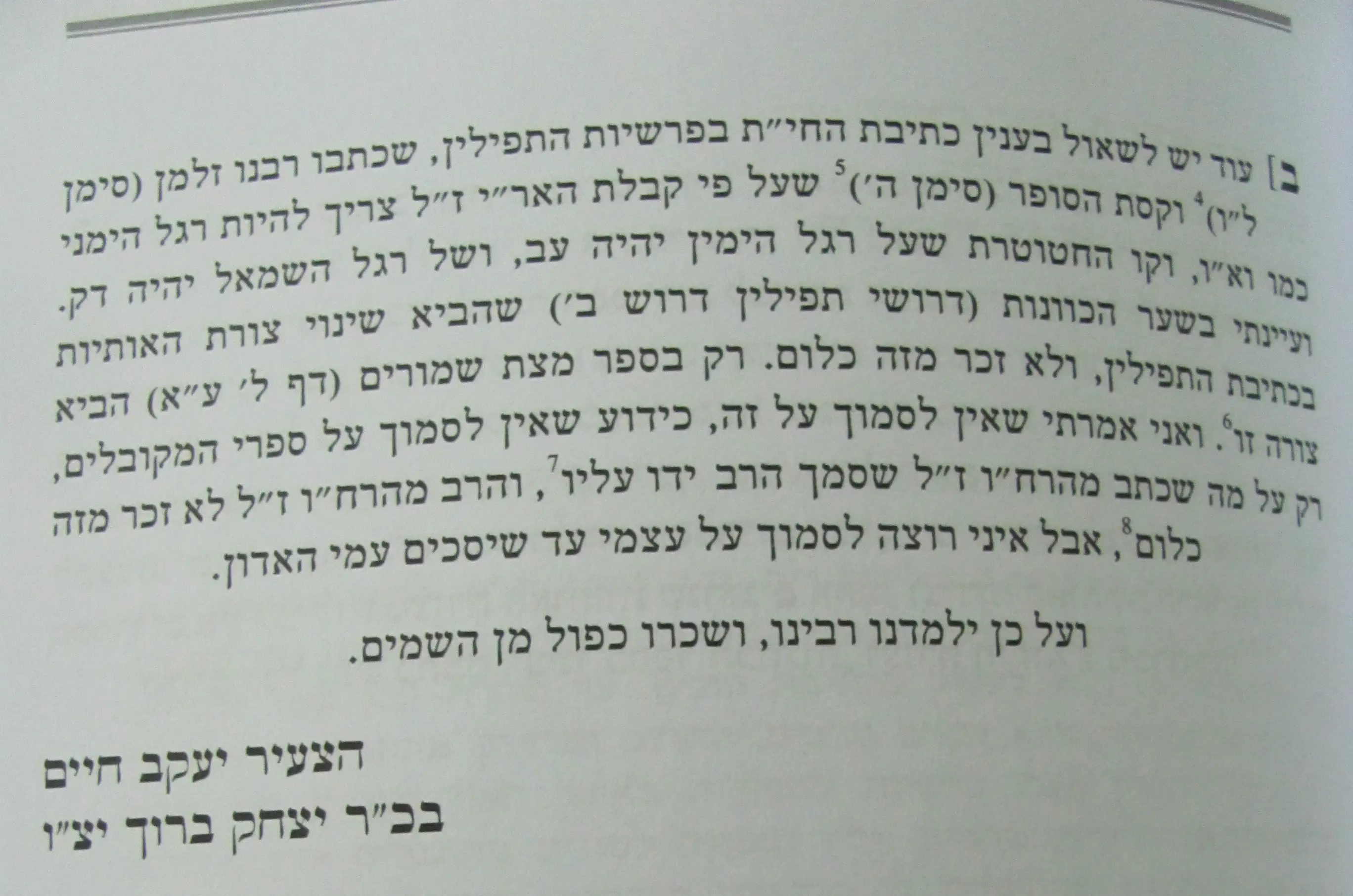 4. ואחרון אחרון חביב כתב האדמה"ז, שלפי בקשת המגיד יצר כתב שעונה גם לדרישות ההלכה וגם לדרישות הקבלה.