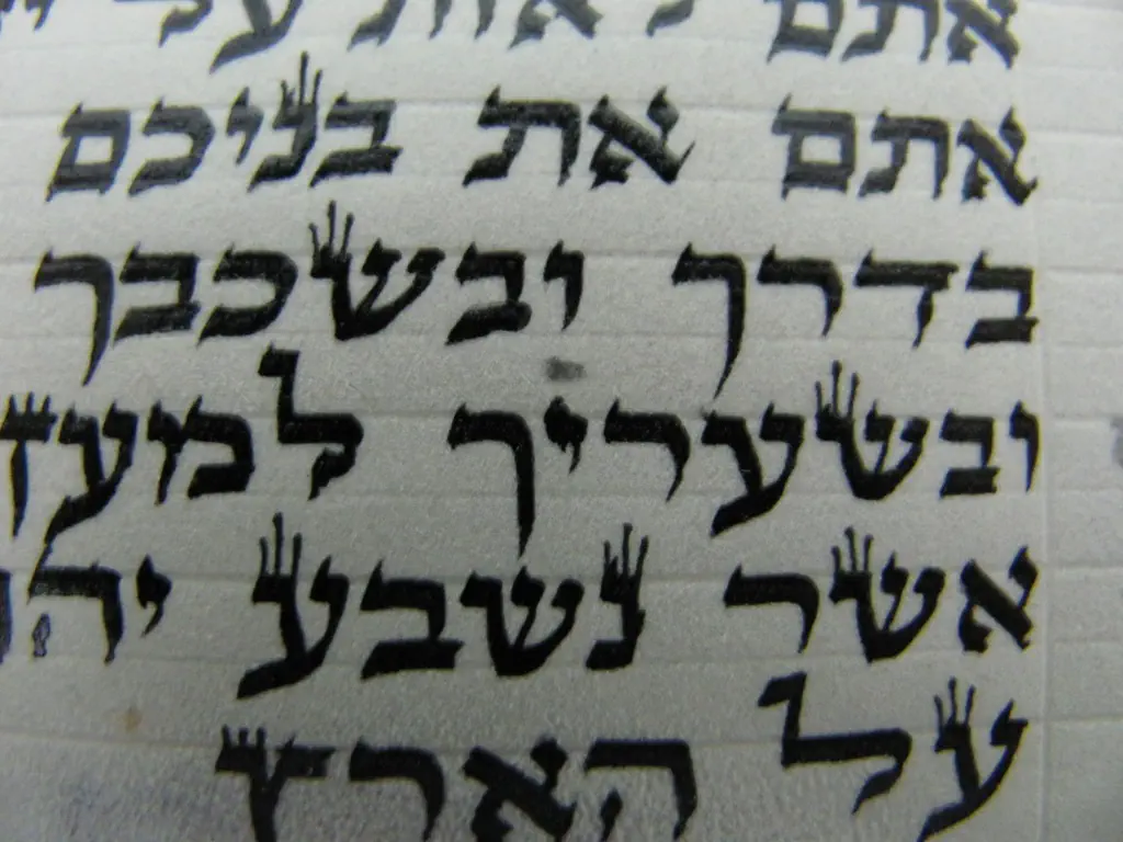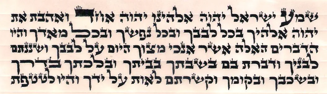 מעל ושננתם ישנה כף פשוטה, ועדיף הלכתית להקפיד שהתגים לא יכנסו לתוכה מלעשות צורת כתר.