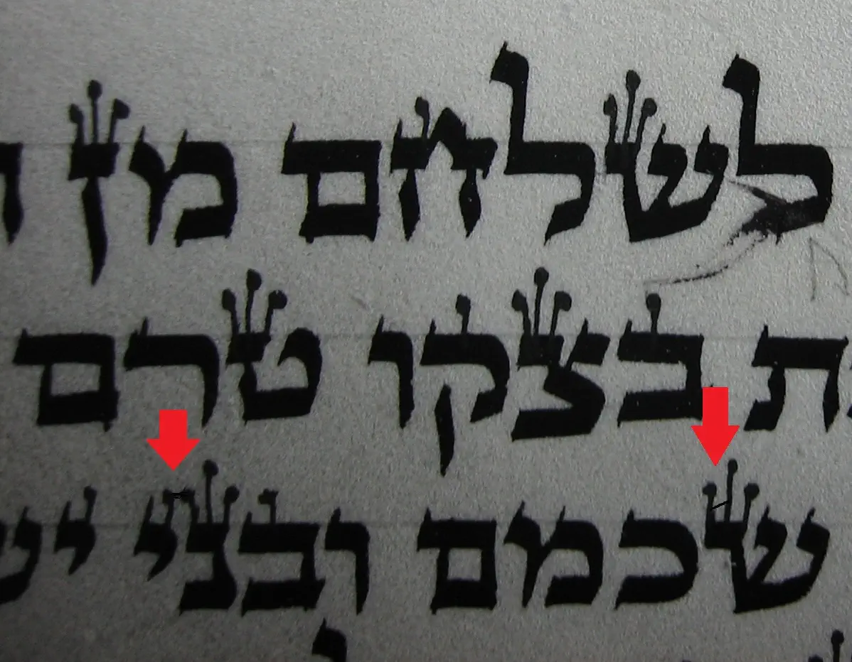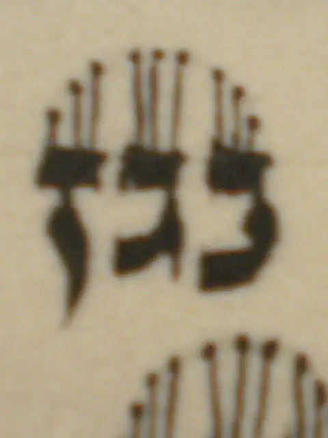 ובש. השנייה ג"כ צורת האות עליה (אף שהירך רחוק ממקומו הנכון יותר מבשאלה הראשונה), והקוץ דר"ת במקום.