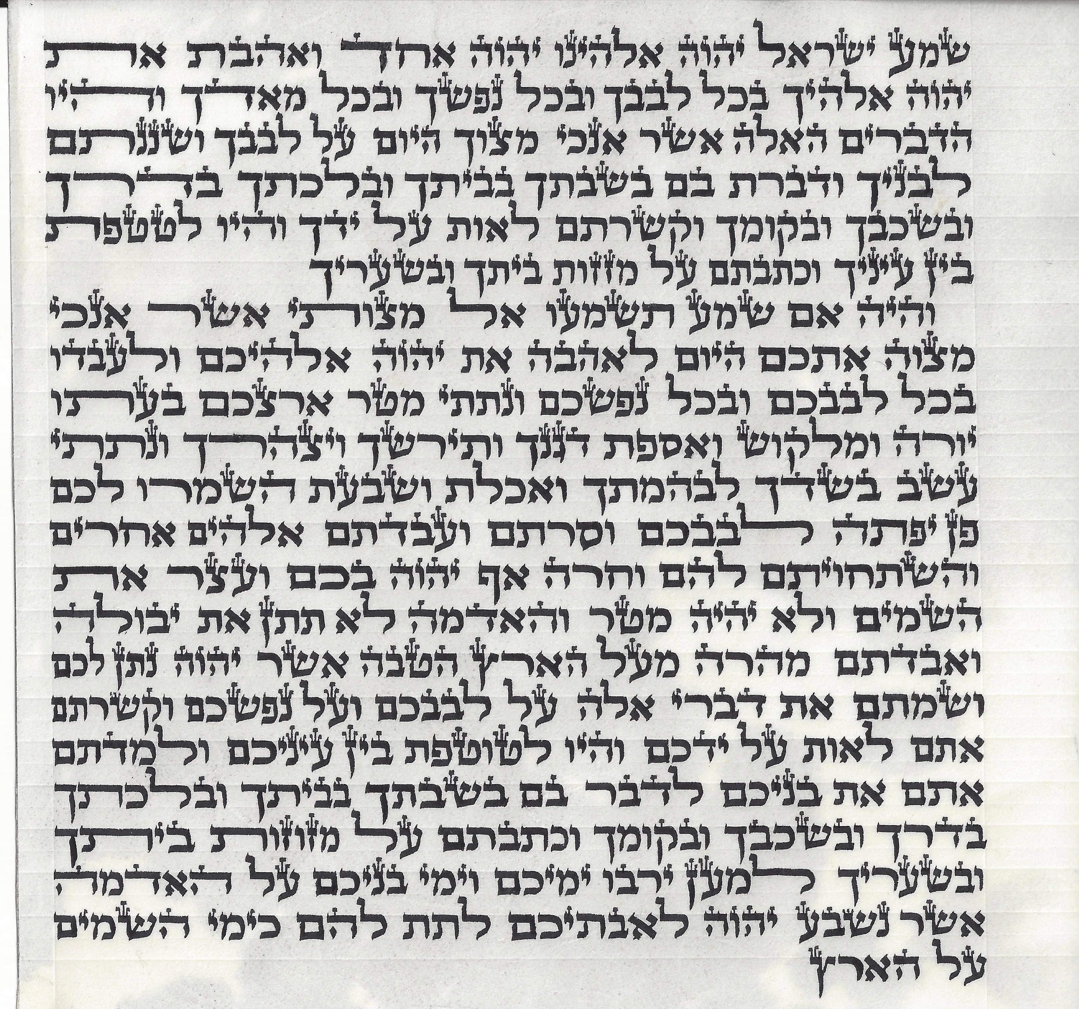 פרשיה סתומה זה ע"פ הרמב"ם, לא ראיתי מזוזה ישנה שנהגו בזה