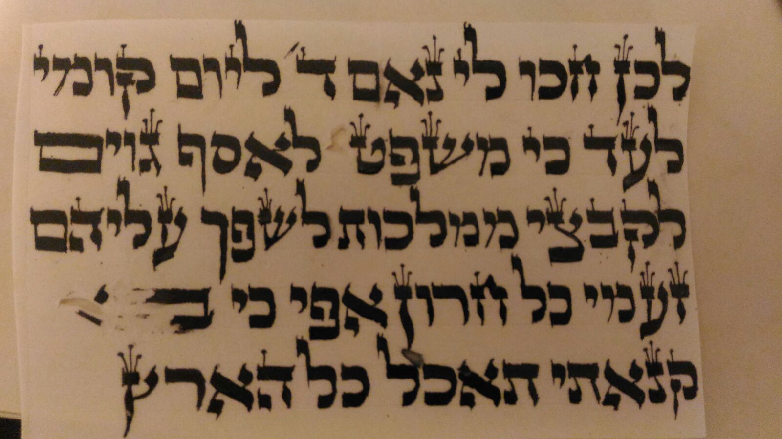 מה שכן, כשאני כותב את הראש של האות ל' ואני צריך להגיע עם הקולמוס יותר "גבוה" על הקלף זה קצת קשה לי. להגיע בצורה הזאת.