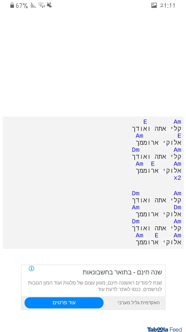 השלב הבא זה פשוט לחפש מלא שירים פשוטים ולהתחיל באמצעות המילון לנגן אותם.