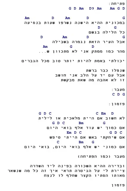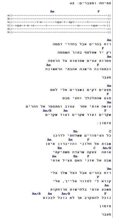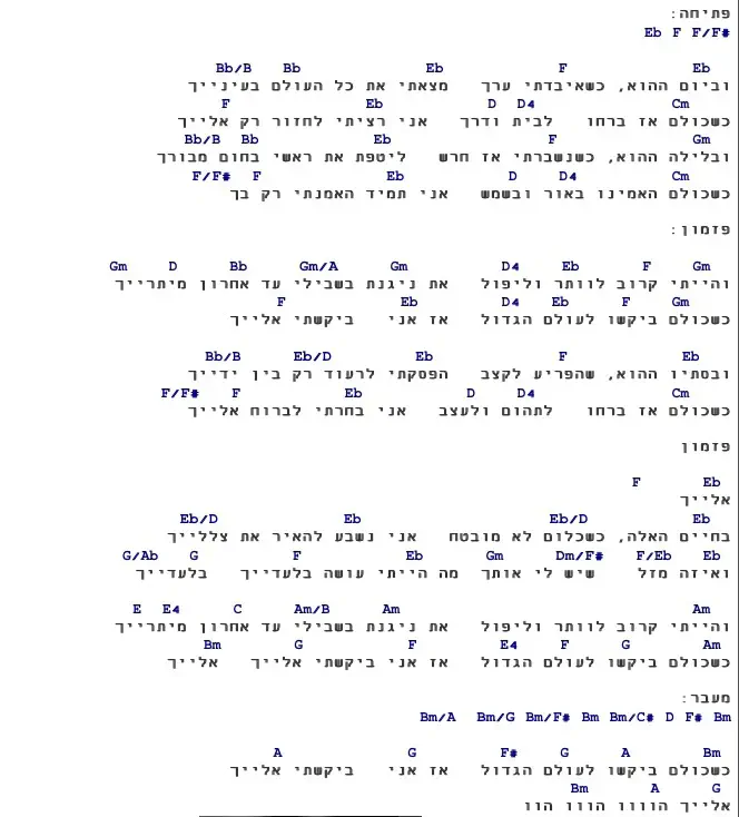 עין הקוראאחרונהמישו יודע אולי על אתר עם אקורדים לשירים דוסים של חודש אלול (חמול על מעשיך, וכל מאמינים וכו