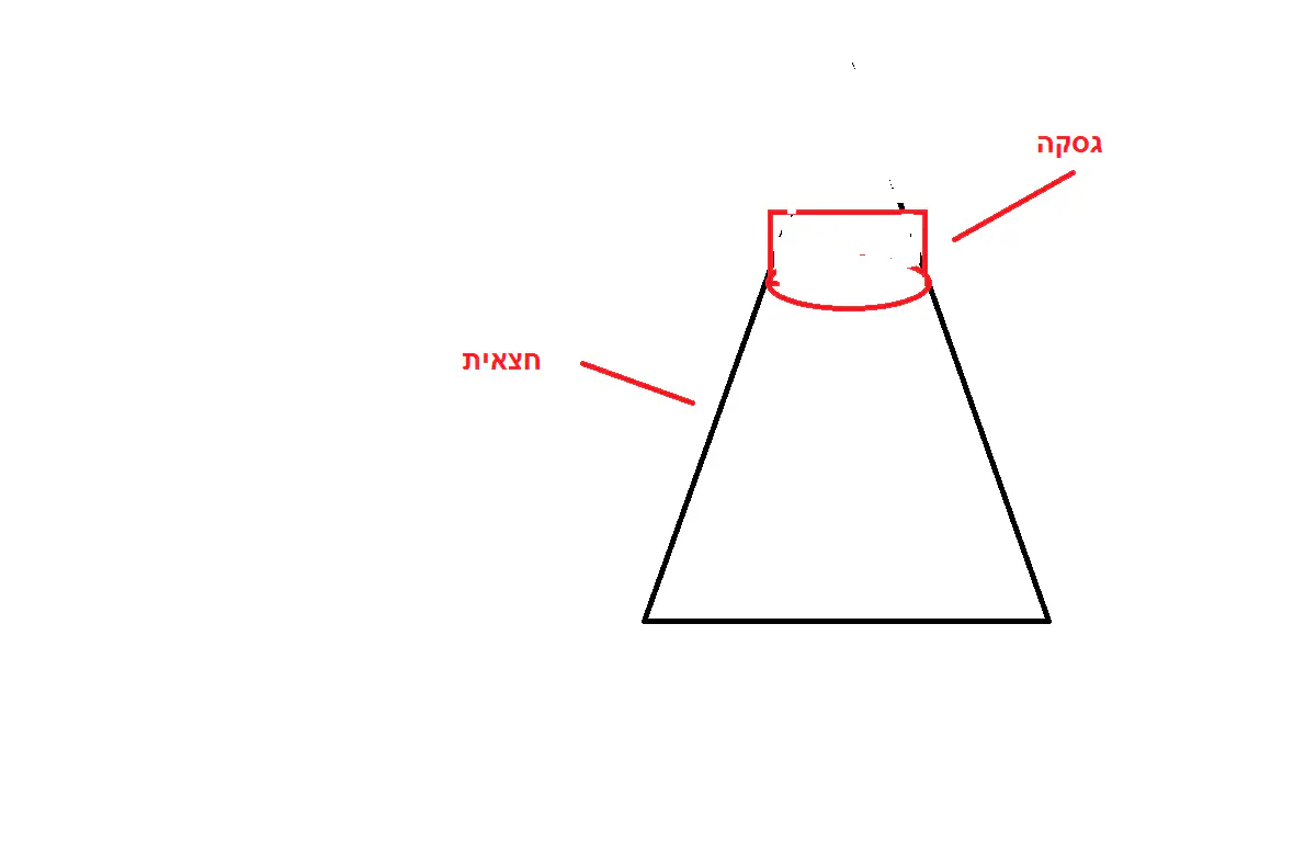2. האלכסון שיוצר את הטרפז הקטן יותר שבחלק העליון של הגזרה- לפי מה נקבע הגובה שלו? והרוחב?