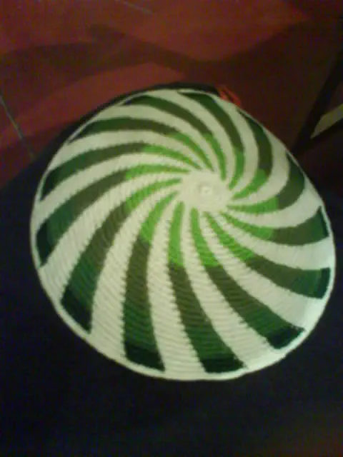 אפשר מחליף צבע - סורגים בערך רבע קוטר מהכיפה, ואז מתחילים להוסיף נקודות בצבע אחר. מצופפים את הנקודות משורה לשורה, עד שהם הופכות לעיקר, והצבע המקורי הוא רק נקודות שהולכות ומתמעטות ונעלמות, כך שנשארים עם הצבע השני בלבד