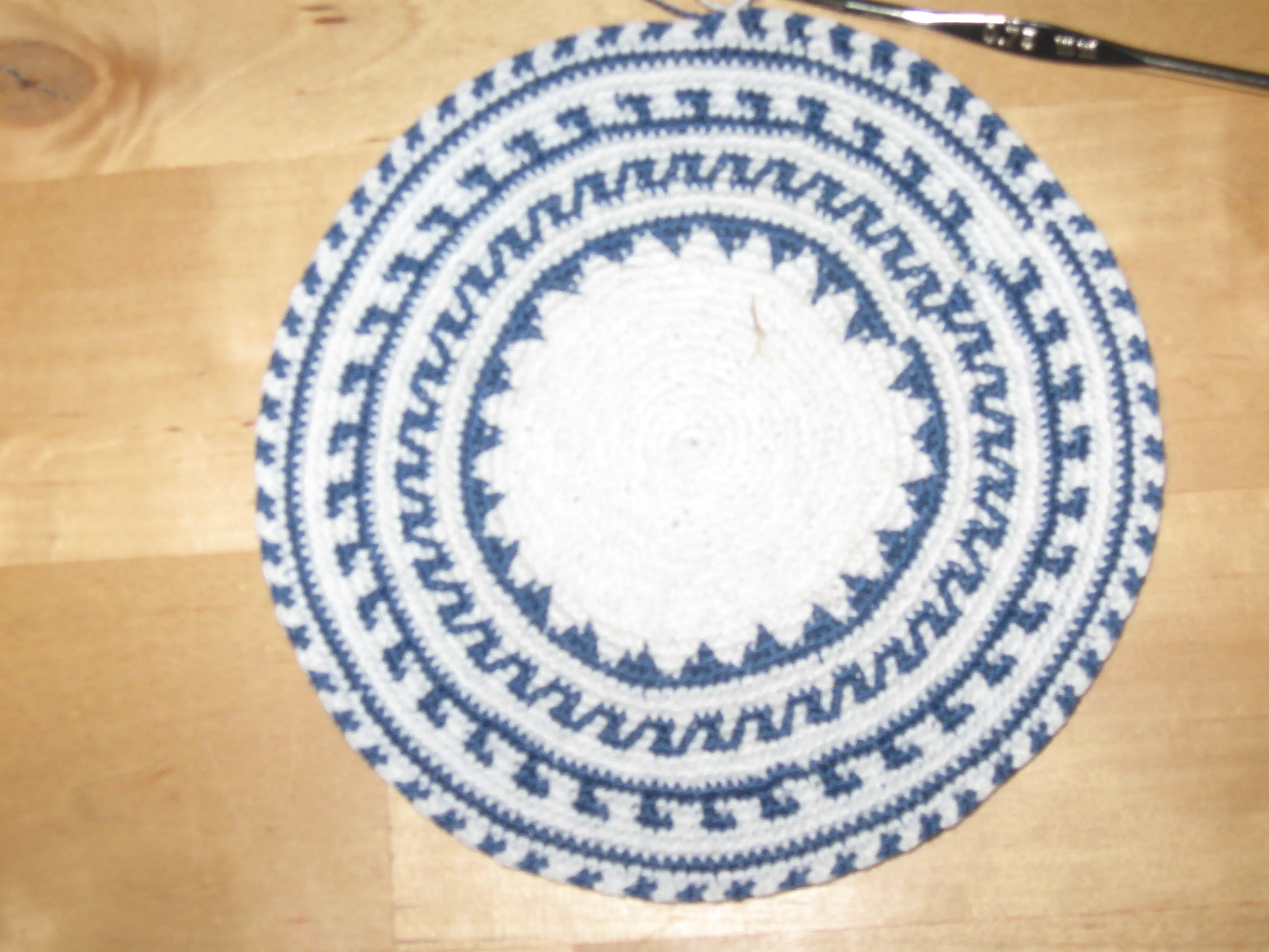 אין דוגמא; כל הכיפה בצבע אחד, ובסוף שורה בצבע אחר.