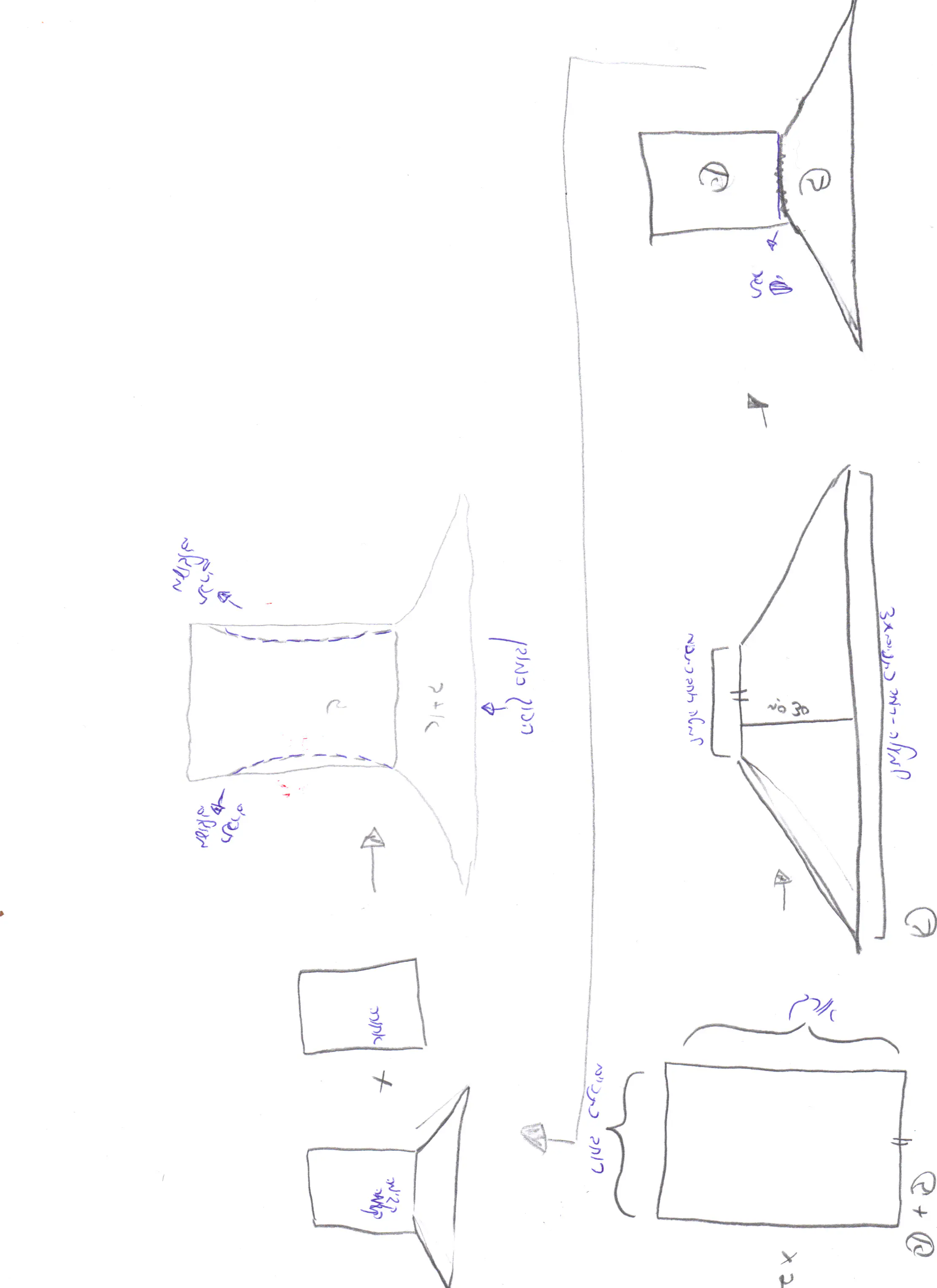 מודדים את הרוחב של הכתפיים כפול שלוש בערך (לא חובה מדוייק) -זה הלמעלה, ולוקחים 30 ס"מ בערך - גובה, והבסיס הוא הרוחב של הכתפיים. ז"א יוצא מין טרפז שהפאות שלו מאוד ארוכות.