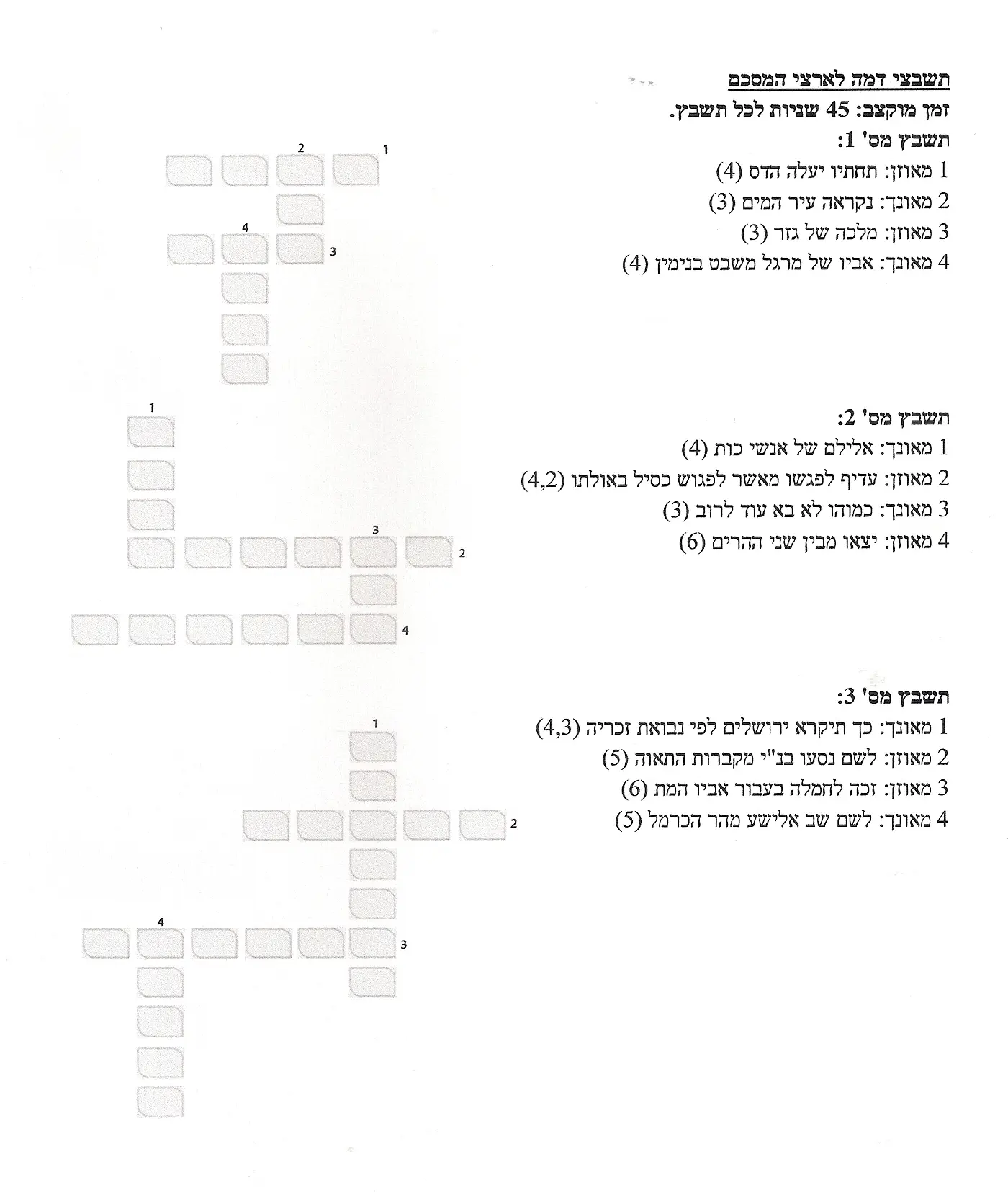 חלק מהשאלות מתאימות גם לשאלות תשבץ אבל לא בזה ההתמקדות