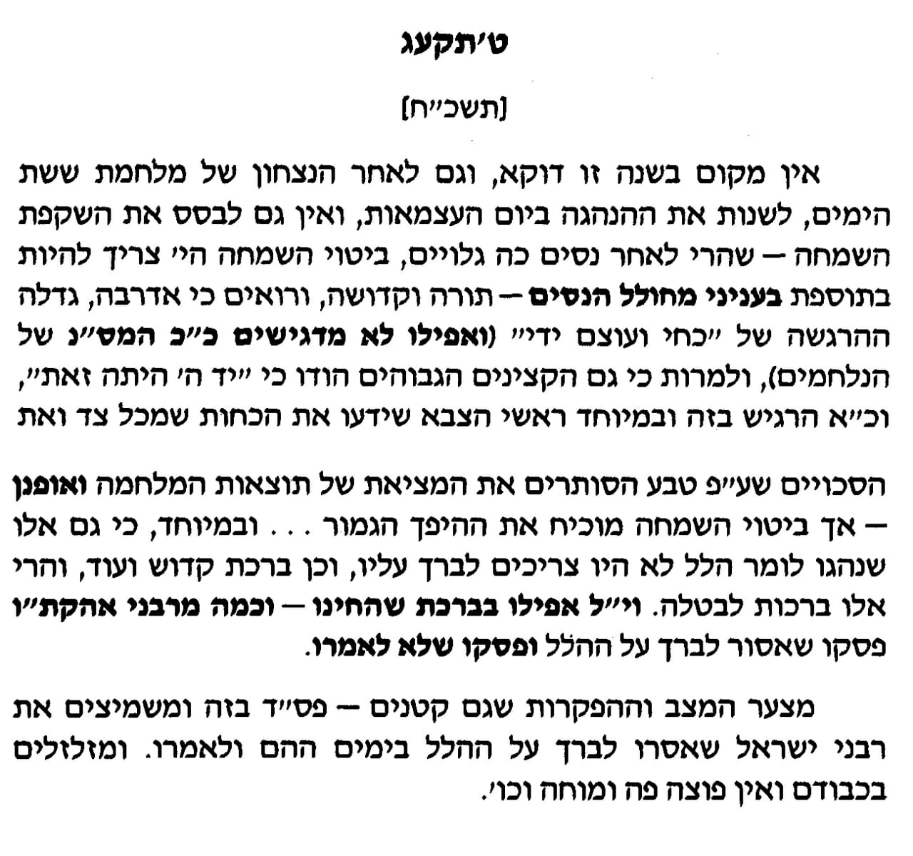 לכל לראש טענו: איך אפשר למחוק את יום-העצמאות מהלוח? הרי אומרים שיום הקמת המדינה הוא בבחינת “אתחלתא דגאולה”! כיצד, איפוא, ניתן להתעלם מ”אתחלתא דגאולה”!
