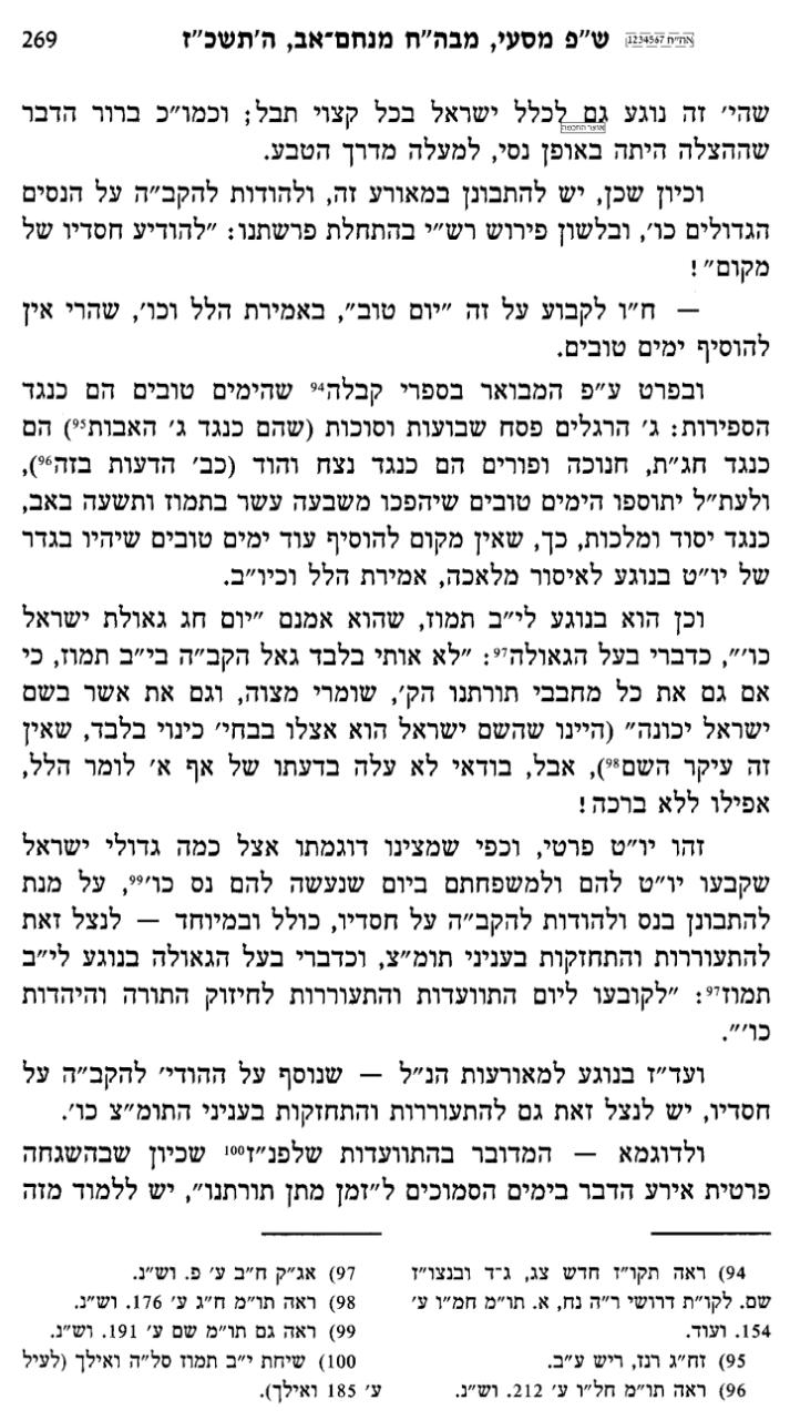 - “לא רק שאין זו אתחלתא דגאולה; ולא רק שאין זה יום-טוב ויום ישועה עבור יהודים וכו’ - אלא בכך עיכבו את הגאולה למשך כך וכך עשרות שנים!”