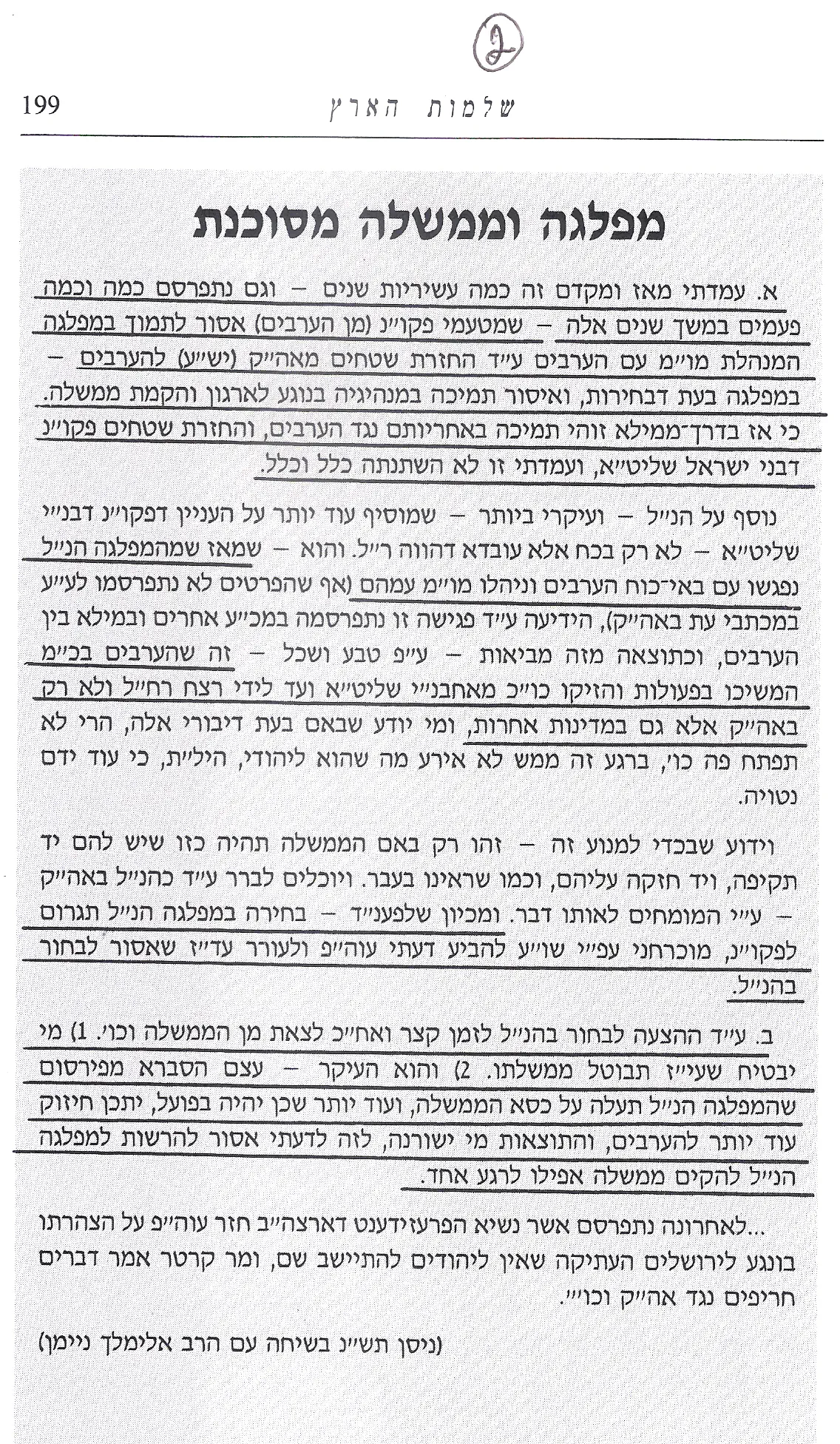 השיטה של לבחור מישו שקט שכולו עונג, יכנס לקואליציה(נגד דעת הרבי, הרבי אומר שעצם הישיבה בקואליציה מחזקת את אותם עניינים שהם כנגד תורת ישראל כמו עניין מיהו יהודי ומסירת שטחים) ובזמן שיהיה מו"מ עם הפלסטינים ידיע: שנגיע לרגע ההצבעה נתנגד ובפועל שמגיעים להבעה הוא מתחמק.