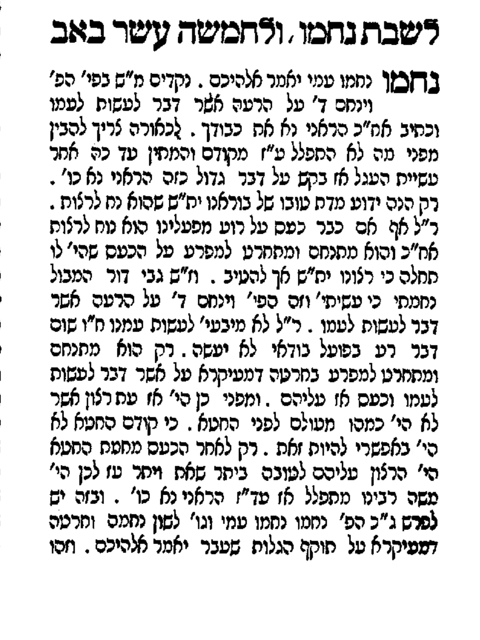 שבת נחמו, ז' דנחמתא, ט"ו באבגמני