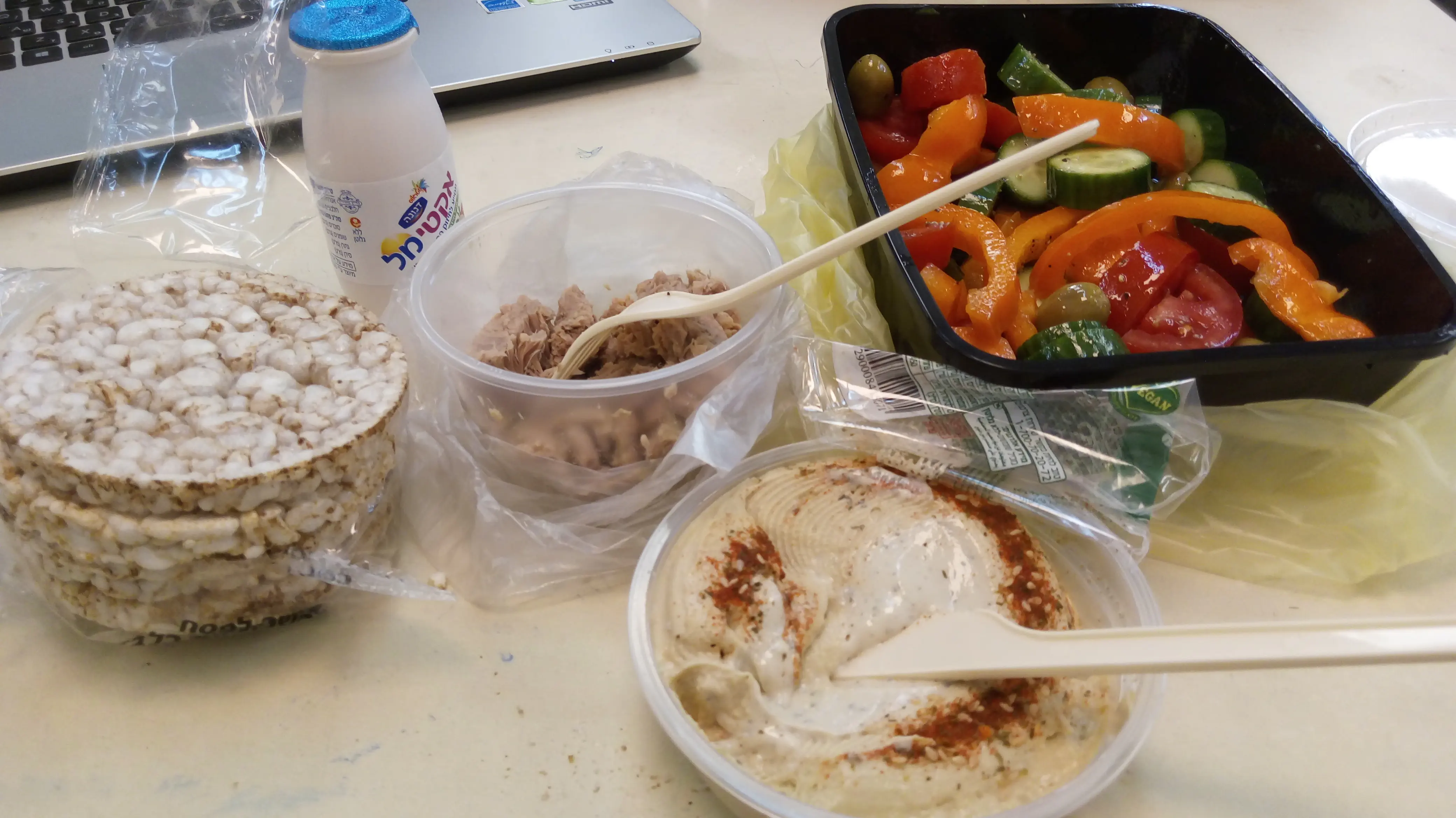 וכשאני לאמספיקה להכין אוכל אז אני קונה אצלינו בקפיטריה סנדוויץ עם טונה, או שאני קונה בסופר לחמניה וגבינה קטנה...