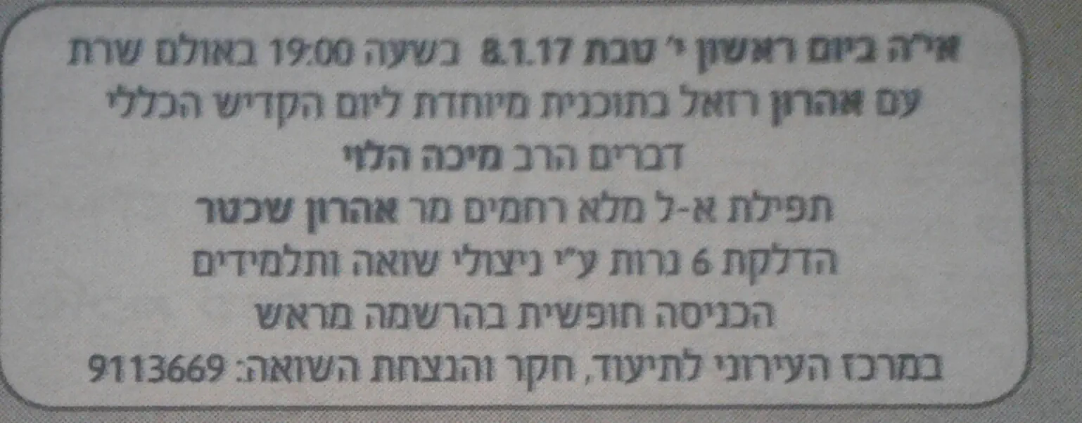 אז אני חשבתי איך לסייע עוד ומהלב, כמו שנאמר: "המתחיל במצווה אומרים לו - גמור", אז בדקתי אצלי בכל מיני מקומות... והתברר שהיה לי סכום כסף דיי גדול של 20,000 ומשהו- קופת גמל מעבודה של 5 שנים שעבדתי באולפנא לבנות בכפר סבא בניקון מטבח ושטיפת כלים. הכסף הזה היה נזיל וניתן למשיכה. אז העברתי לחשבון שלי וכשהוא הגיע שאלתי את אימי כמה היא צריכה וכמה יעזור לה... והיא ענתה ש..19 אלף יספיקו.