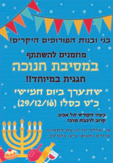 ביום רביעי אור לכ"ט כסליו, נר חמישי של חנוכה בשעה 18:30
