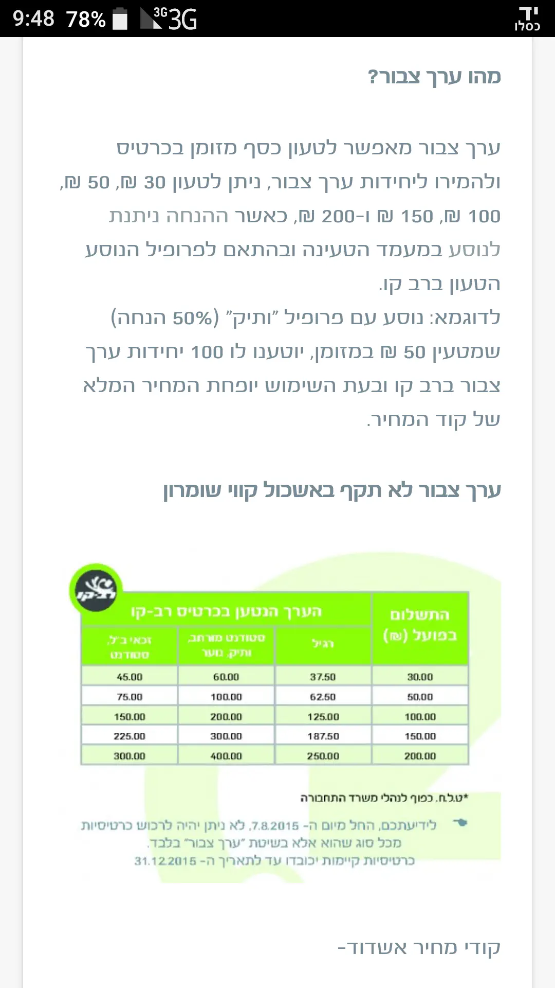 ערך צבור זה אומר שאתה טוען כסף על כרטיס הרב קו שלךותן טל
