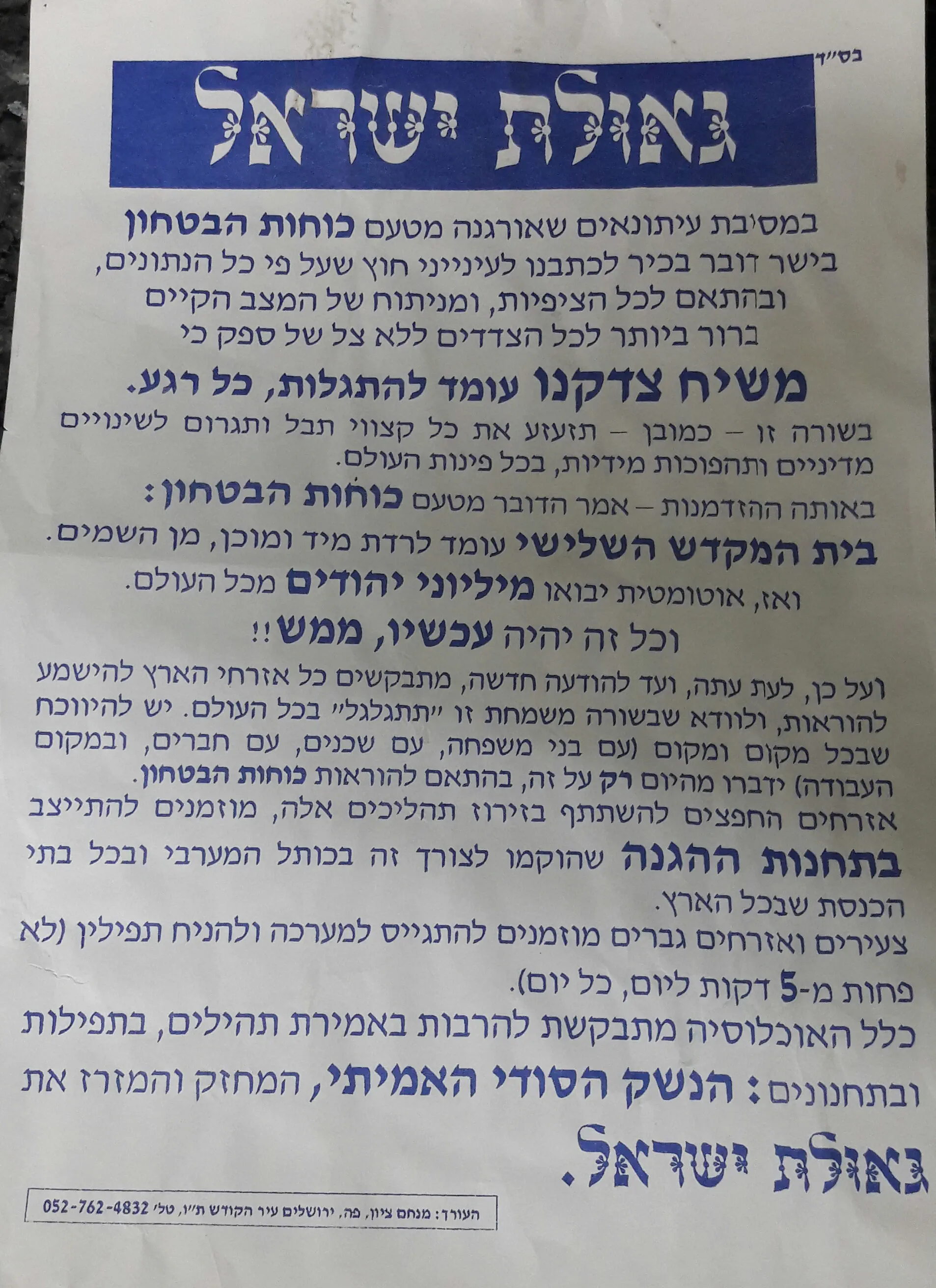 יהודים בואו ורשו הארץ ומאחורה אני בוער זה של גאולצ