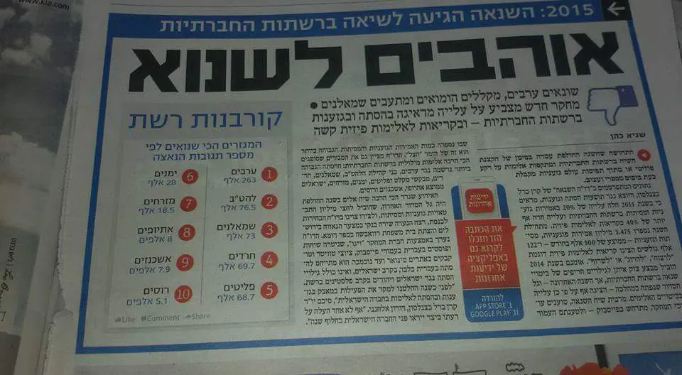 חישבו במחקר הזה את כל מיליוני הודעות ההסתה והטרור של הערבים נגד היהודים? לא נראה לי.