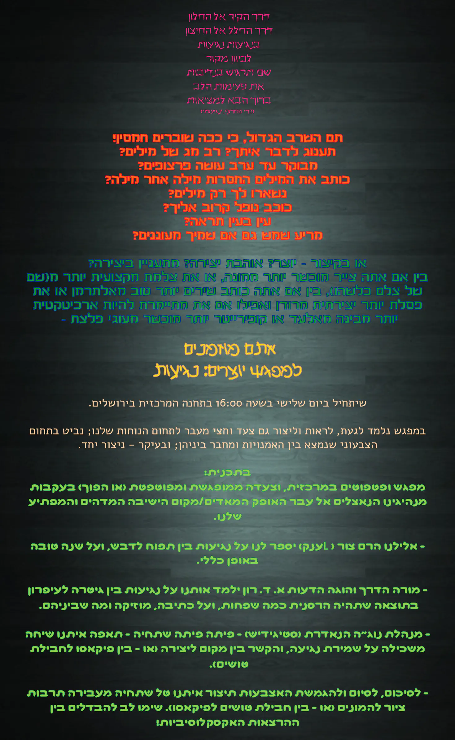בודדי הצמעים שיש להם אפשרות למפגש ביום שלישי ב16:00יוני