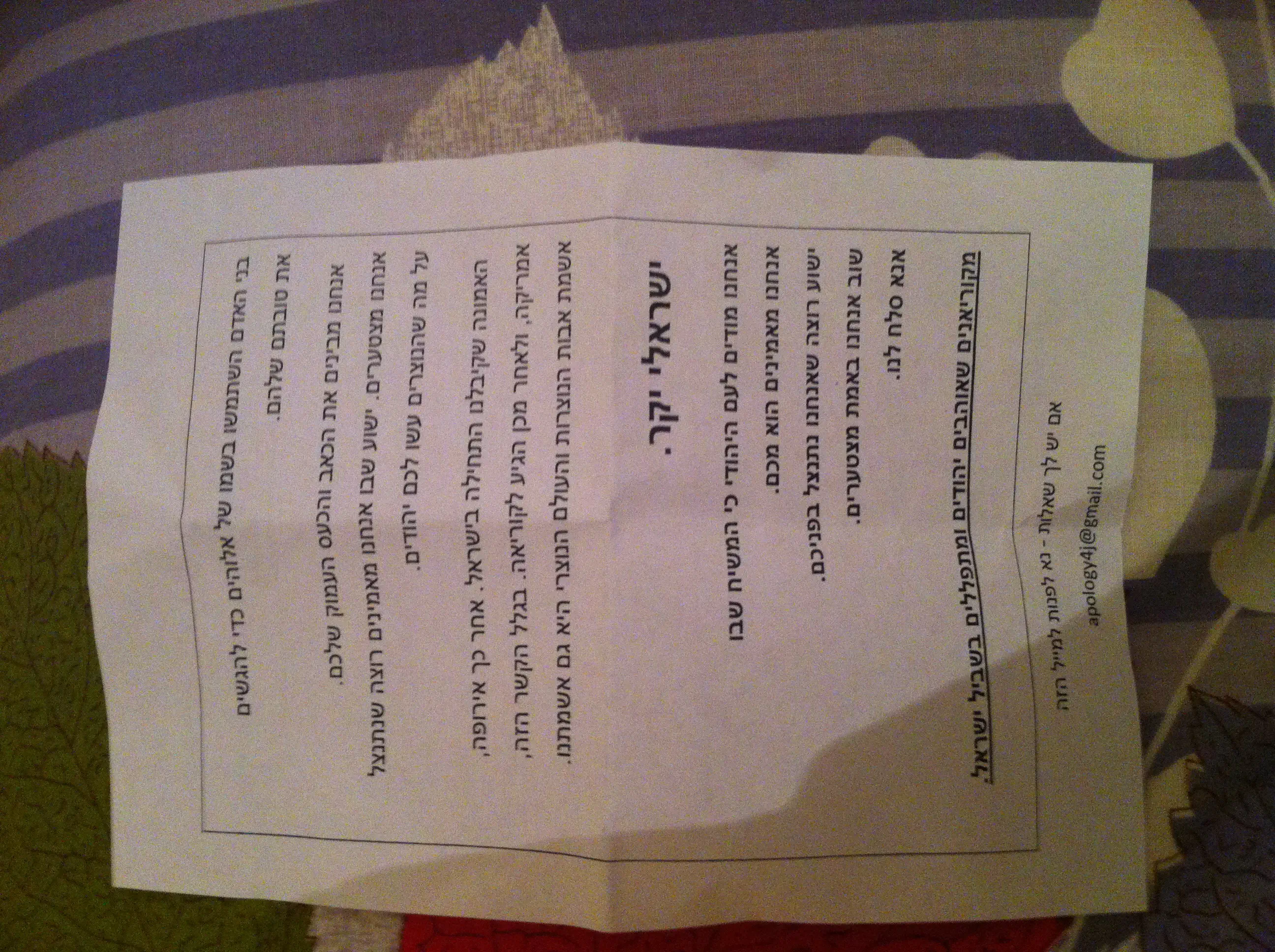 קודם כל, הרגשתי טוב מעצם המעשה. אבל בעיקר כתבתי את זה, כי אני חושב שהדרך לשנות את יחס העולם אלינו, זה צומח ממעשים קטנים כאלו. ברגע שעשית לאדם טובה באופן אישי ונתת לו הרגשה טובה, בד"כ הוא ימשיך את האהדה אליך ויזכור איך יהודי דתי התייחס אליו, (אלא אם כן הוא ממש אויב ושונא אותך).
