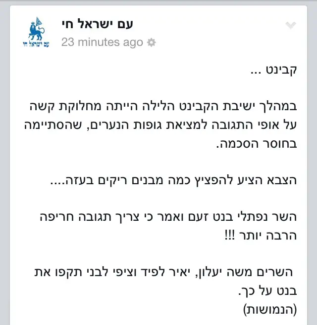 ראש הממשלה ושות' הם עדיין בישיבה חושבים מה לעשות?טאבולה ראסה