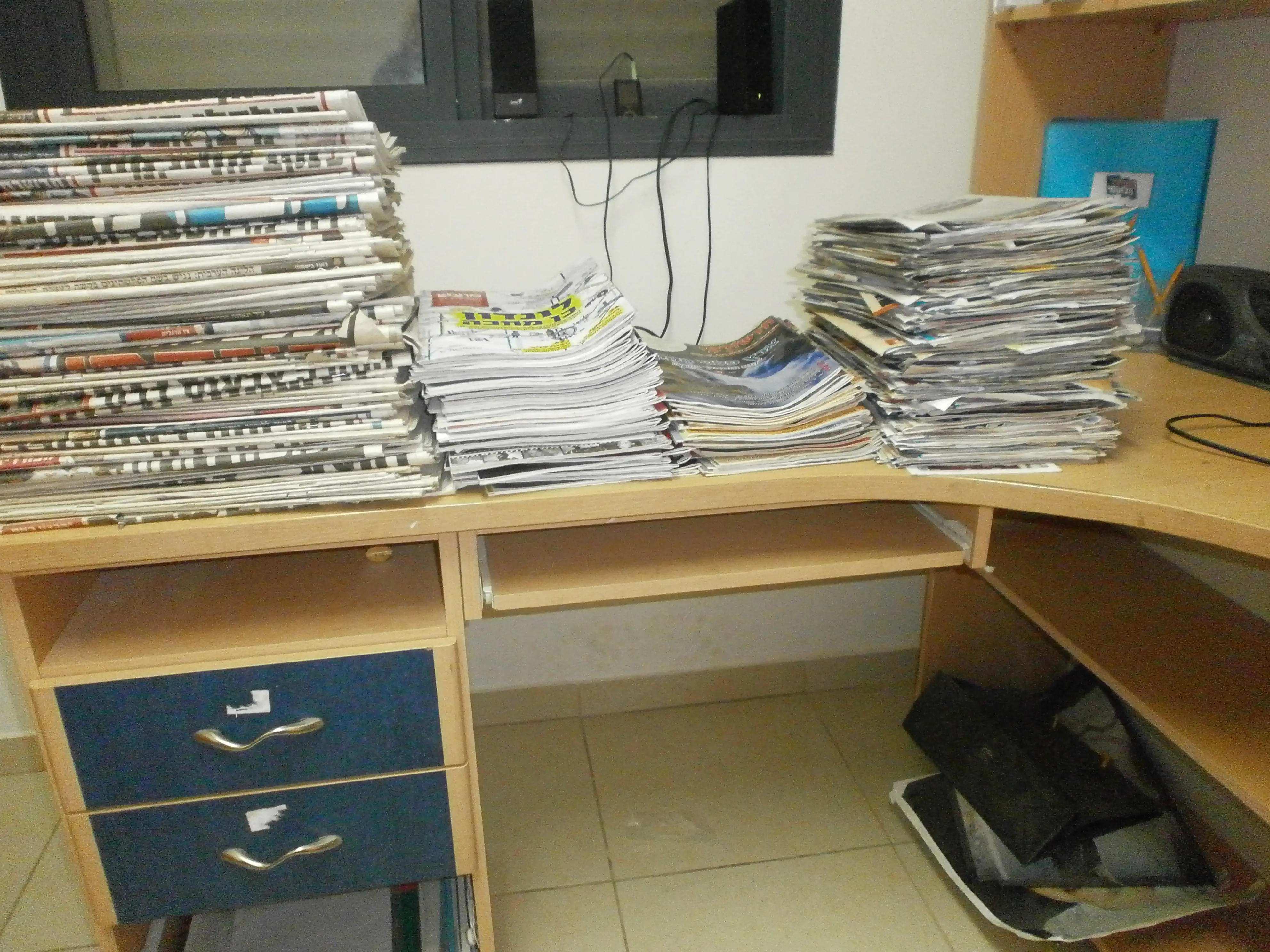 מרדכימדברת כאן משהי שיש לה ארון שלם לעיתונים (!!) (מדף אחד לעלונים, אחד למקור ראשון, אחד להארץ, ואחד למשפחה באנגלית)