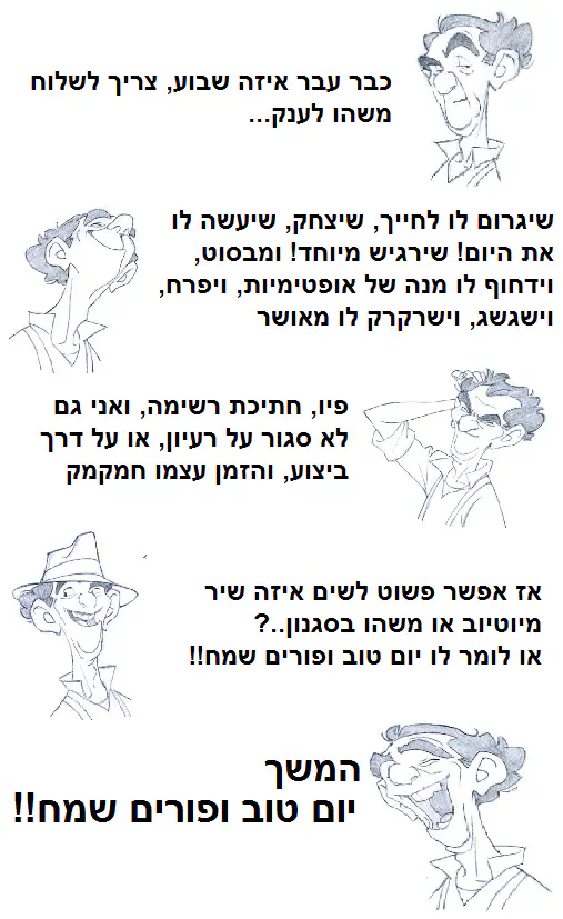 אם אתם ממש רציניים – בתגובה הבאה יש מהלך שלם לפורים. ממש יפה! ואל תתייאשו בהתחלה...