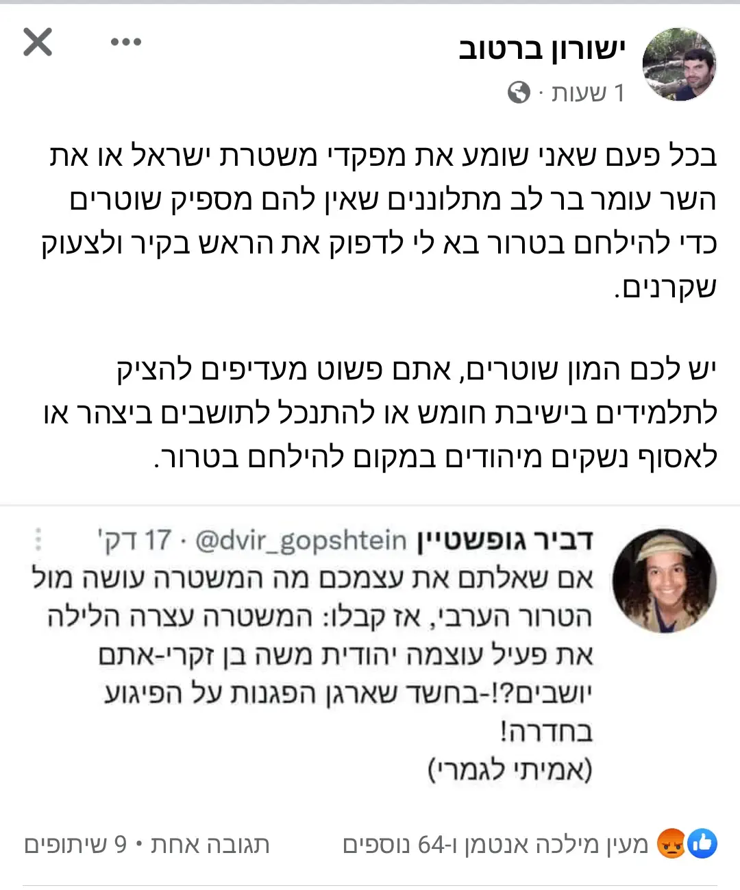 אה וגם זו גזענות נגד שוטרים
