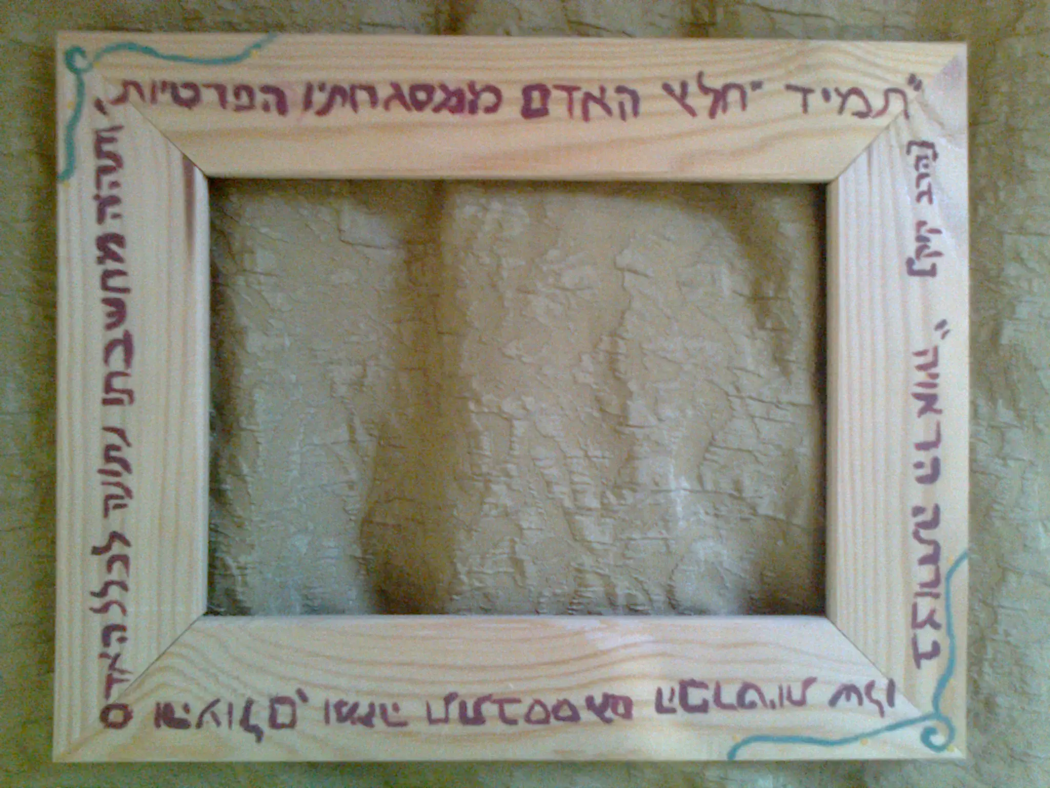 "היום תכננתי היכן בדיוק לעשות זכר לחורבן בכניסה לבית. אך בעז"ה, כשנגמור את הבית, נתלה שם צילום של הכהנים בעבודתם והלויים בדוכנם".