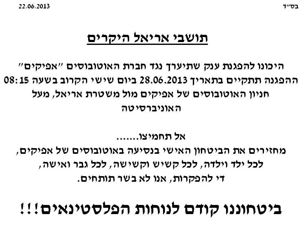 הפגנה באריאל ביום שיש הקרוברחלקה