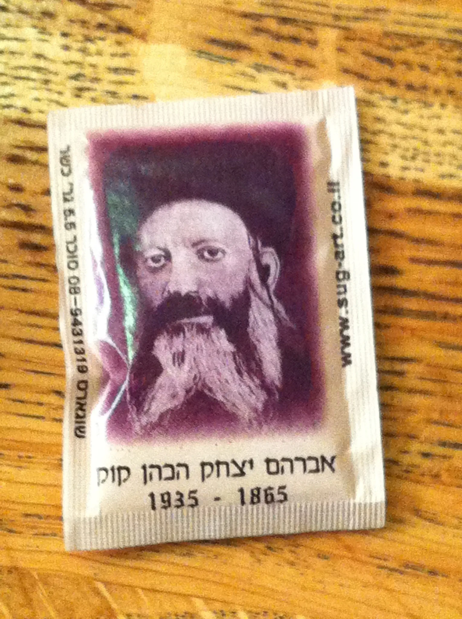ולגבי הרב קוק- רעיון מוזר לשים את מנהיגי הציונות על שקיות סוכר..