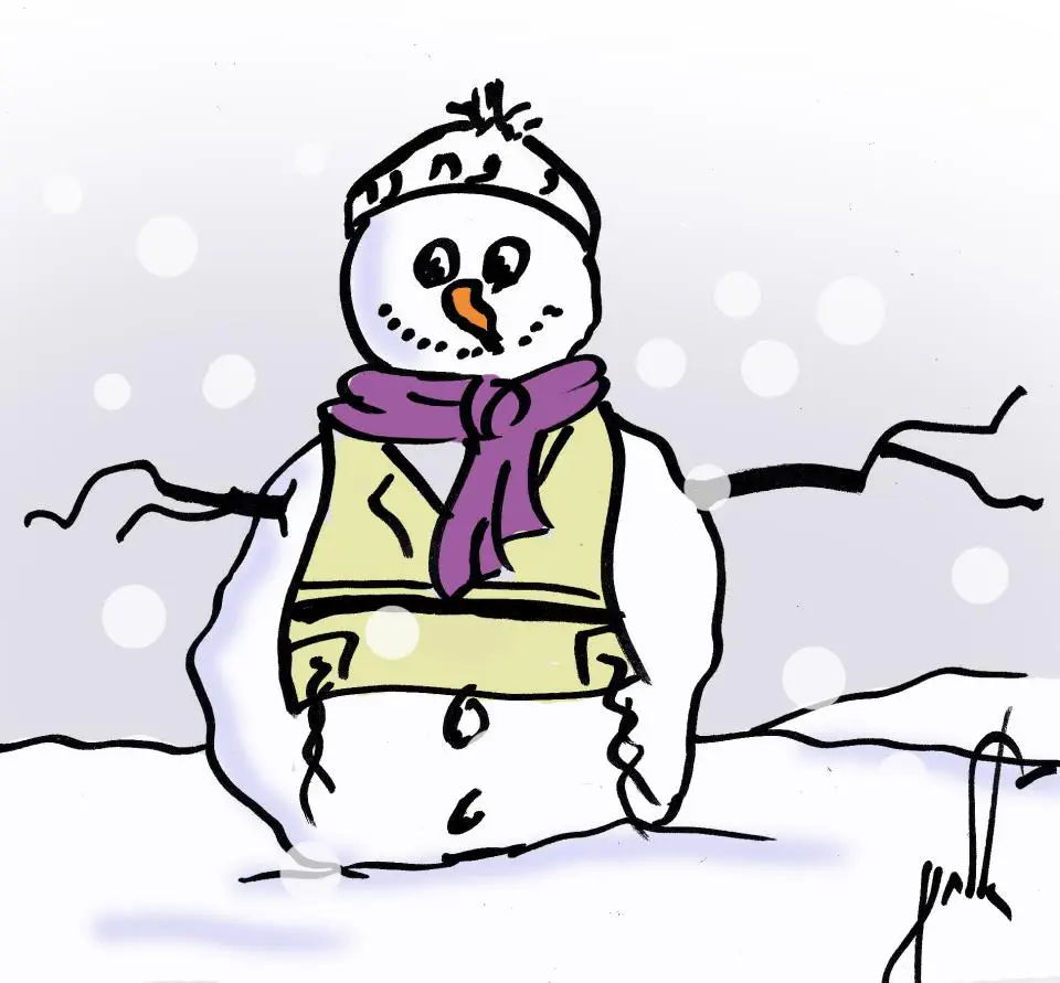 בניתי בובת שלג קטנטנה על טיפת השלג שנערמה על הרכב בתחילת הערב