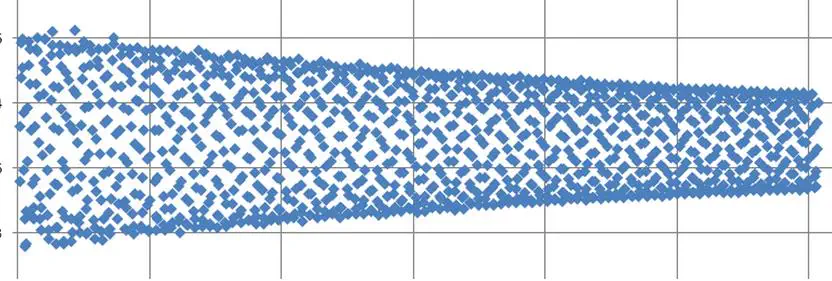 הנקודות מאוד צמודות זו לזו... (כל נקודה בהפרש של עשירית שניה).