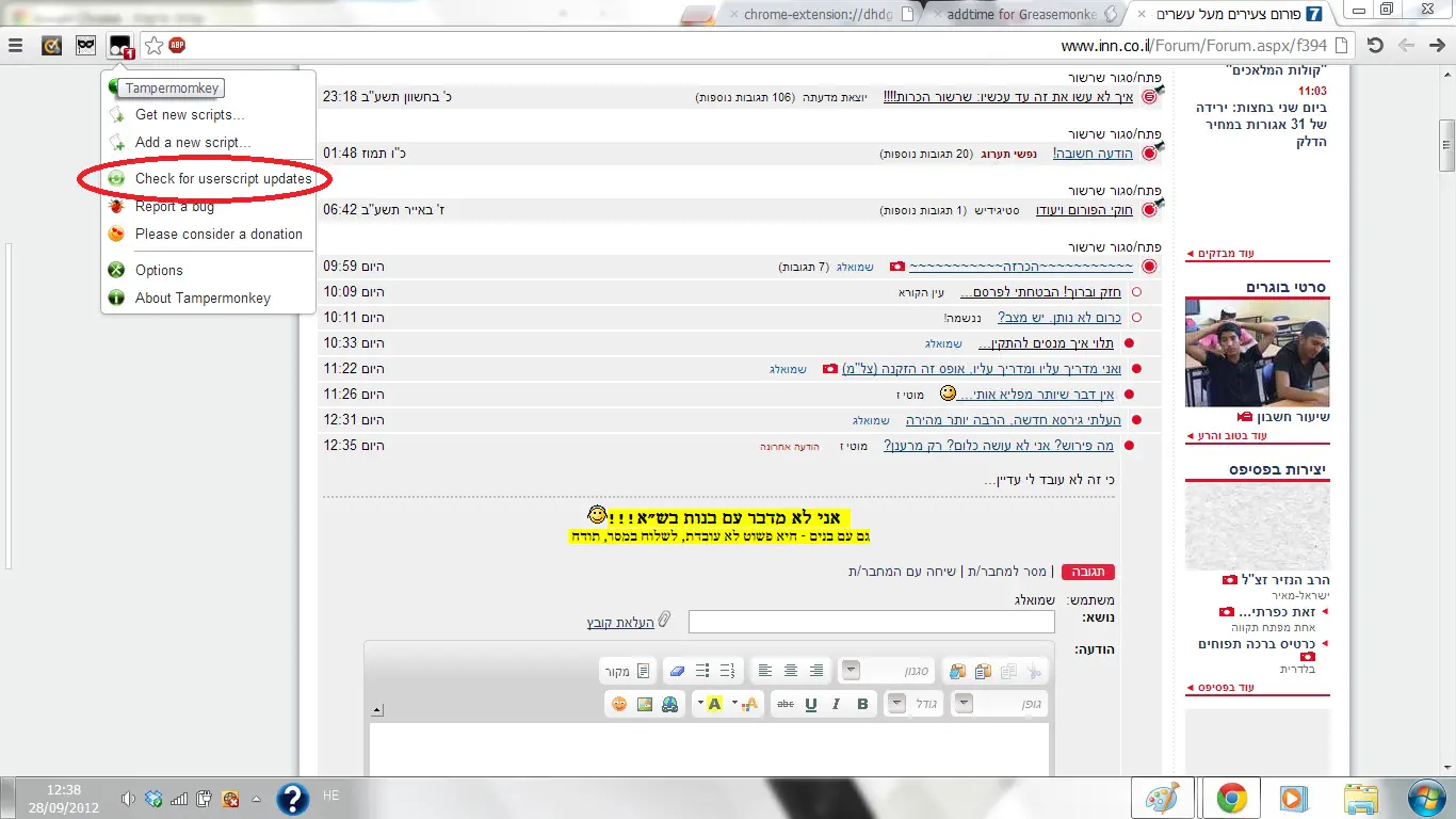 אם לא מתעדכן יש אופציה לעדכן ידני בתפריט של הTampermonkey.