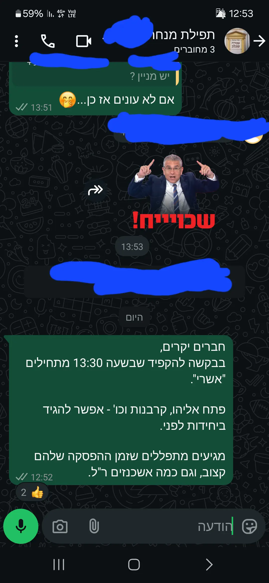 הוראה של מנכ"ל החברה (דתי מזרחי בעצמו!!!) - בשעה 13:30 מתחילים אשרי.