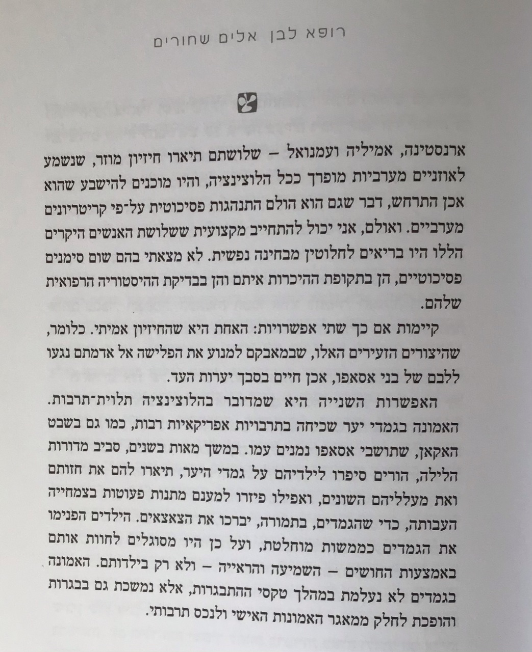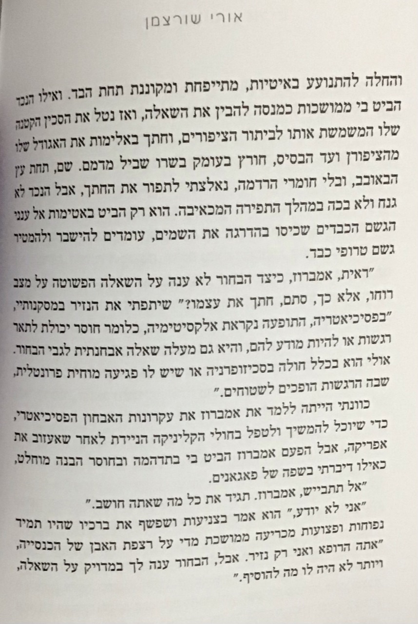 אני קורא עכשיו ספר מעניין שנקרא ״רופא לבן אלים שחורים״, הספר מתאר את החוויות של רופא ישראלי - פסיכיאטר בעת שליחותו בטיפול בשבטים נידחים באפריקה. הספר בוחן את המפגש של רפואת הנפש המערבית עם תרבות שונה לחלוטין.