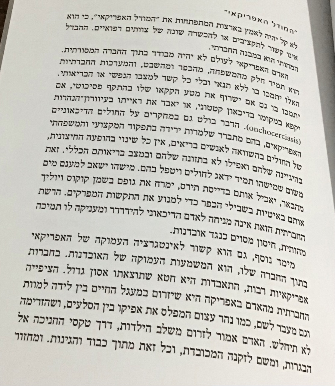 בקטע הבא הוא מעלה תובנה מעניינת מאוד הנוגעת לאובדנות, הנובעת מהשוואה בין החברה האפריקנית לחברה המערבית.