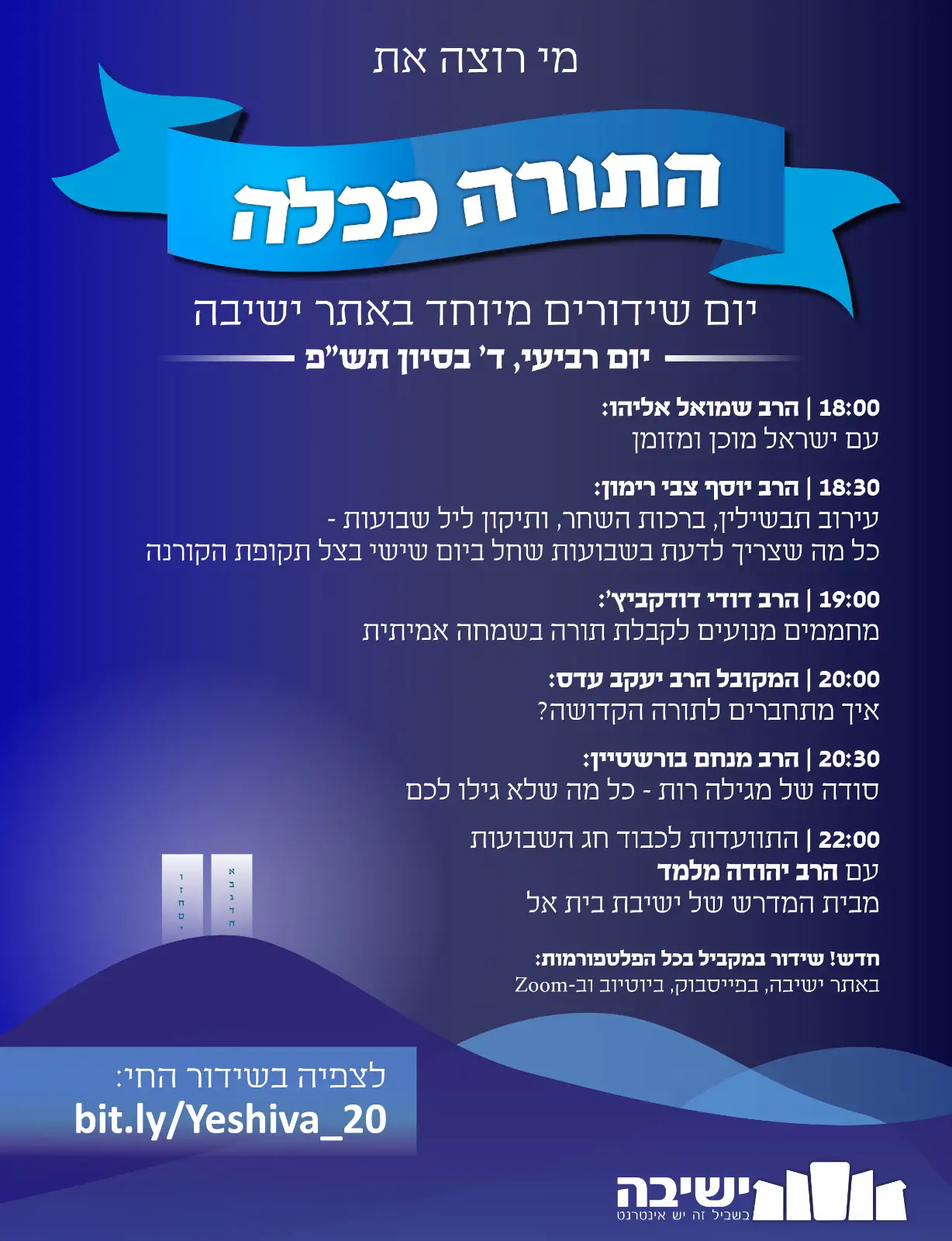 התוועדות אנ"שותיום רביעי, ד' סיון, בשעה 18:00🕕
