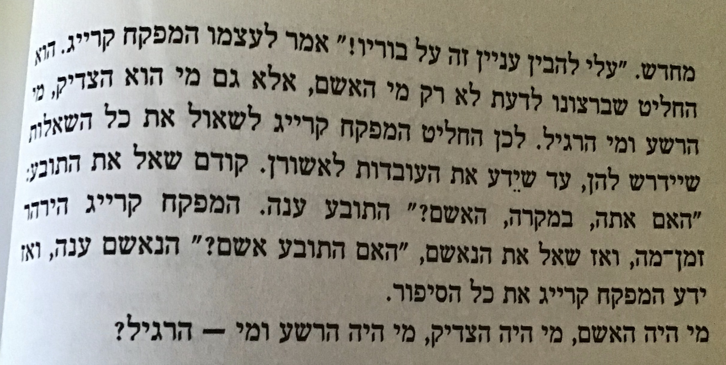 ולכן הוא או רגיל או צדיק, וג אמר שב אינו רגיל ולכן או שהוא שקר וב רגיל אבל אז ג לא הפושע כי הוא שקרן וגם ב חא כי הוא רגיל וזה לא יתכן ידוע שאחד מהם הוא הפושע
