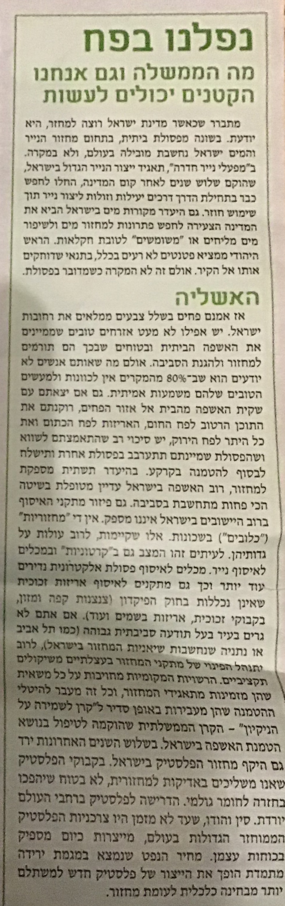לא מיחזרתי מעולם.שום וחניכה