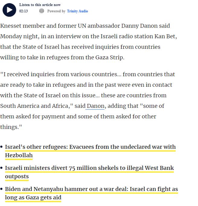 הפלסטינים יהגרו מהשטחים ואז יהיה שלום