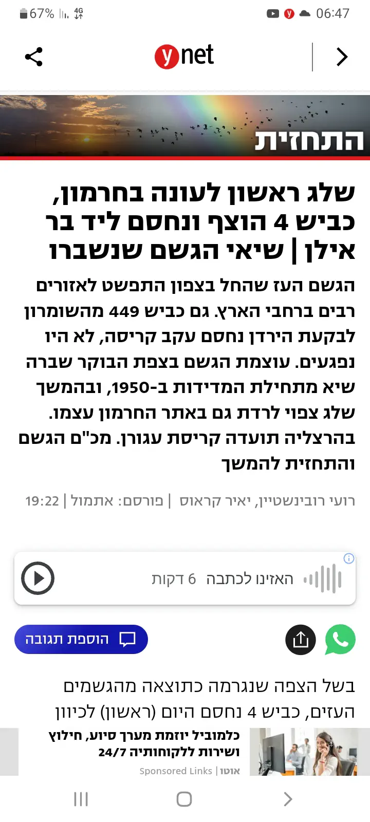 תודה לכל העונים.מקווה שיסתובב לטובה כי די חייבים משיח וגאולה כבר