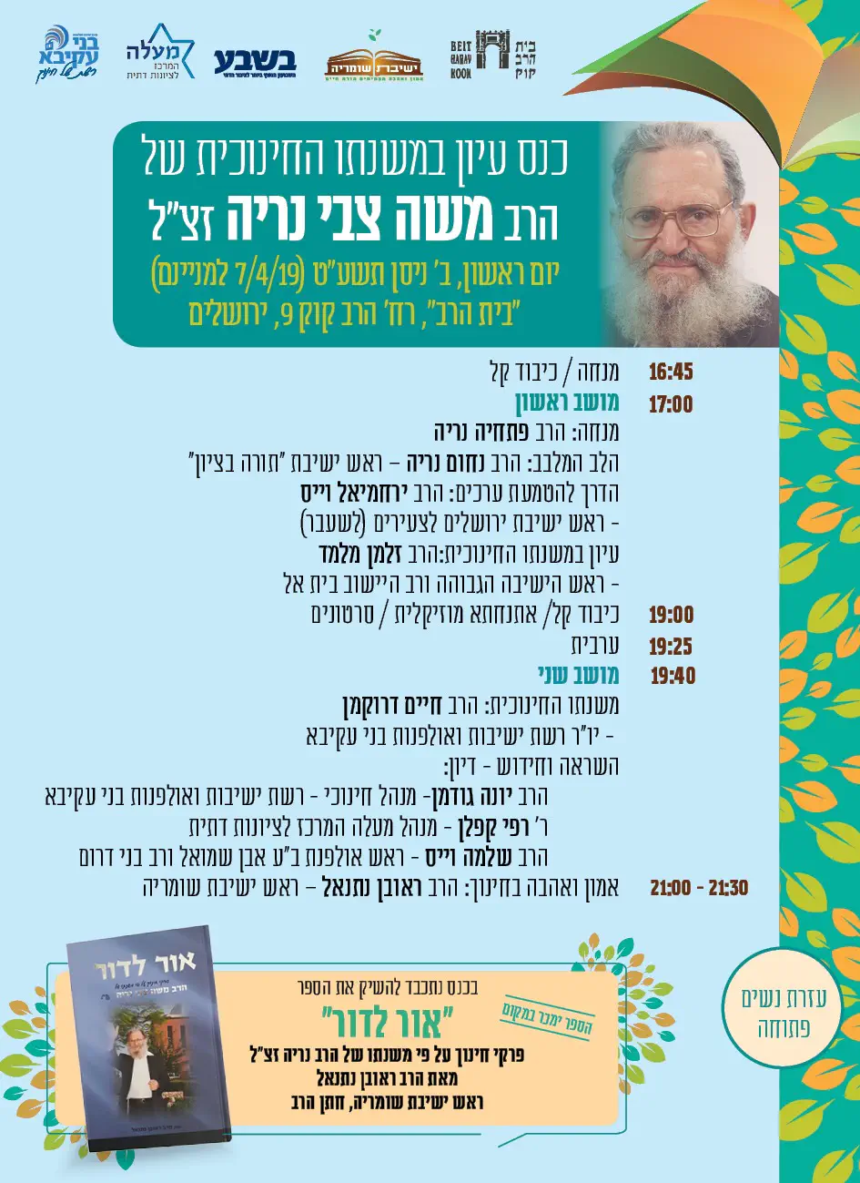 ההתחדשות הזו היא לכם, הינכם נקראים ומוזמנים להתחדש יחד עם החודש, עם השנה, עם העולם כולו שלובש אביב, ועם המציאות כולה המתחדשת יחד עם עם ישראל בחודש יציאתו לאוויר העולם.