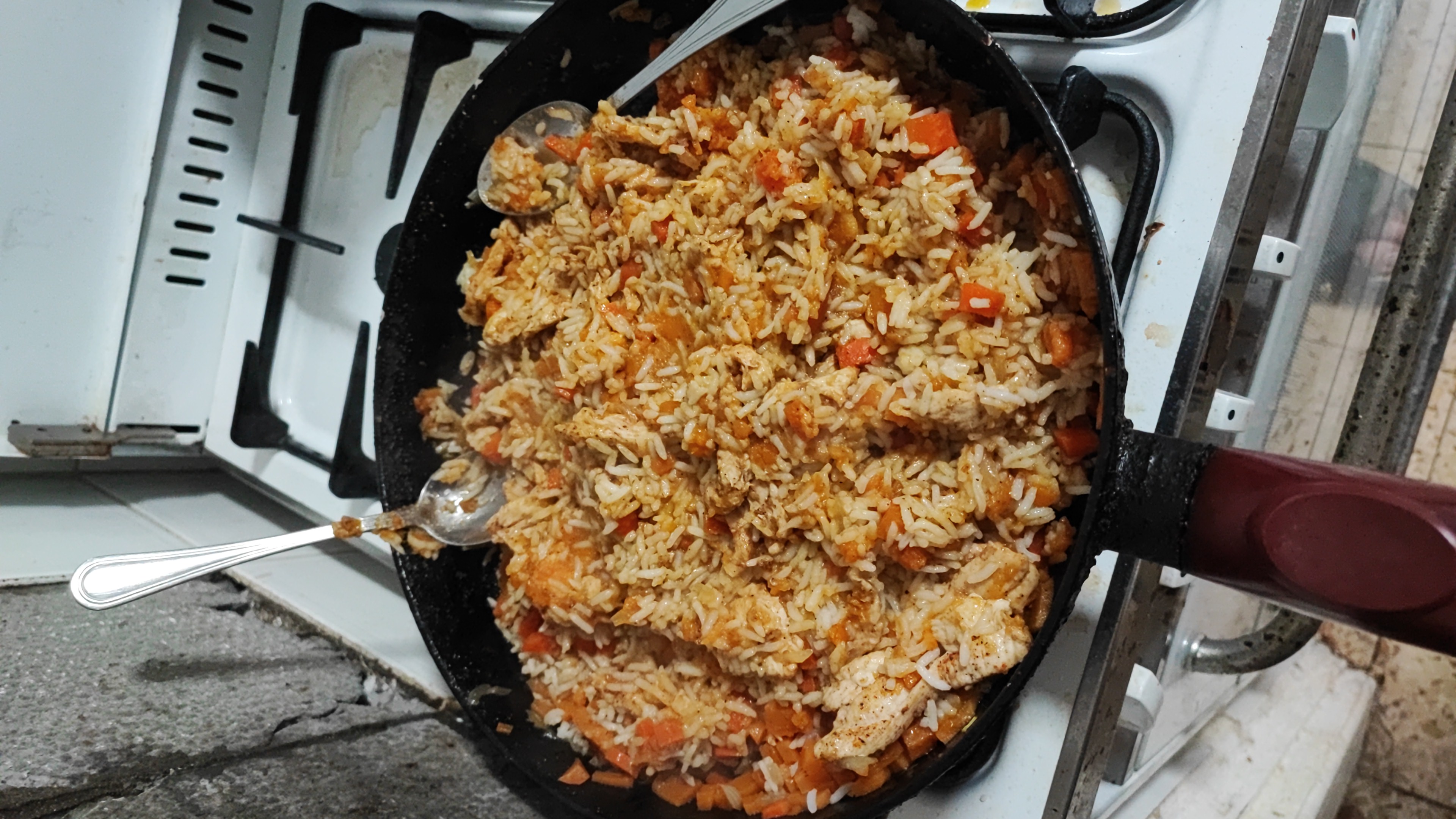 ירקות מטוגנים, חתיכות חזה עוף, ואורז
